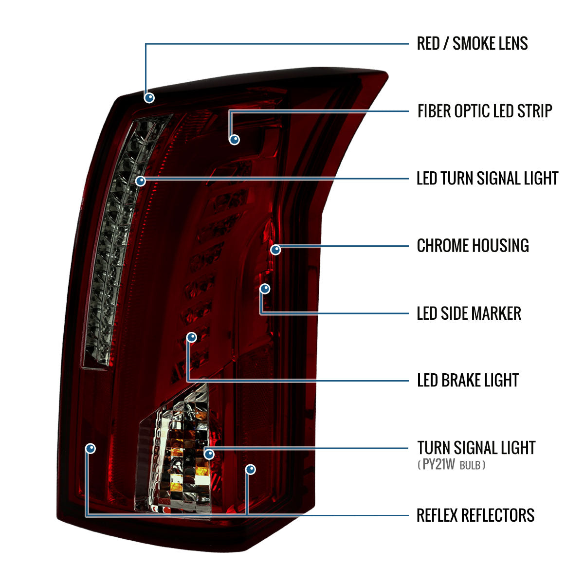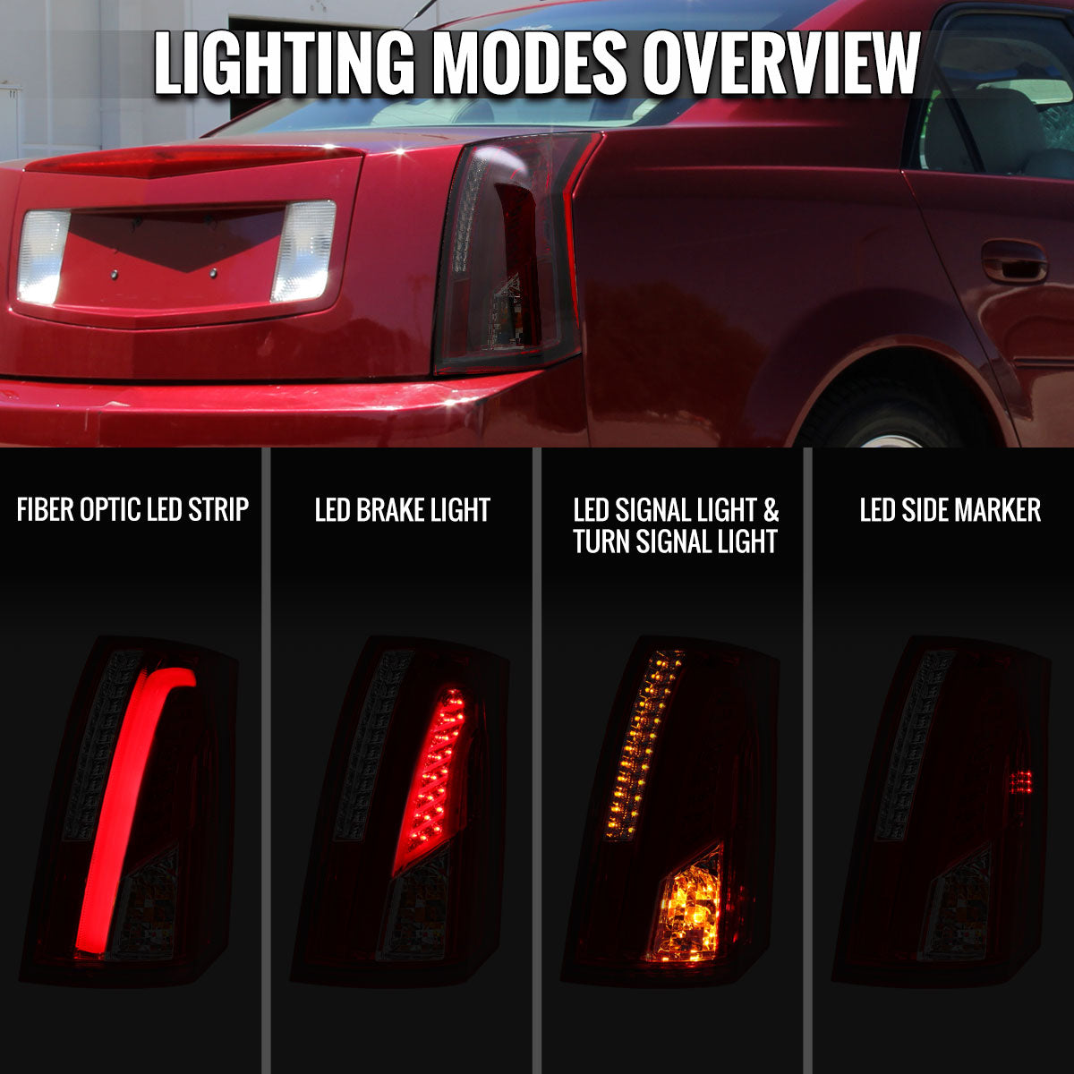 Ronnin - Fits 2003-2007 Cadillac CTS Upgrade Replacement LED Tail Lights Assembly Pair | Smoky Red