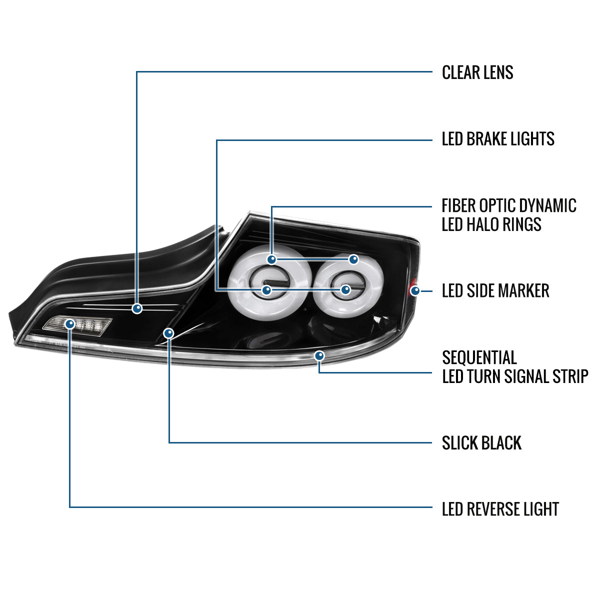 Ronnin - Fits 2003-2007 Infiniti G35 Coupe 2-Door Full LED Sequential Tail Lights Brake Lamps Assembly Pair | Glossy Black | White Halo Rims