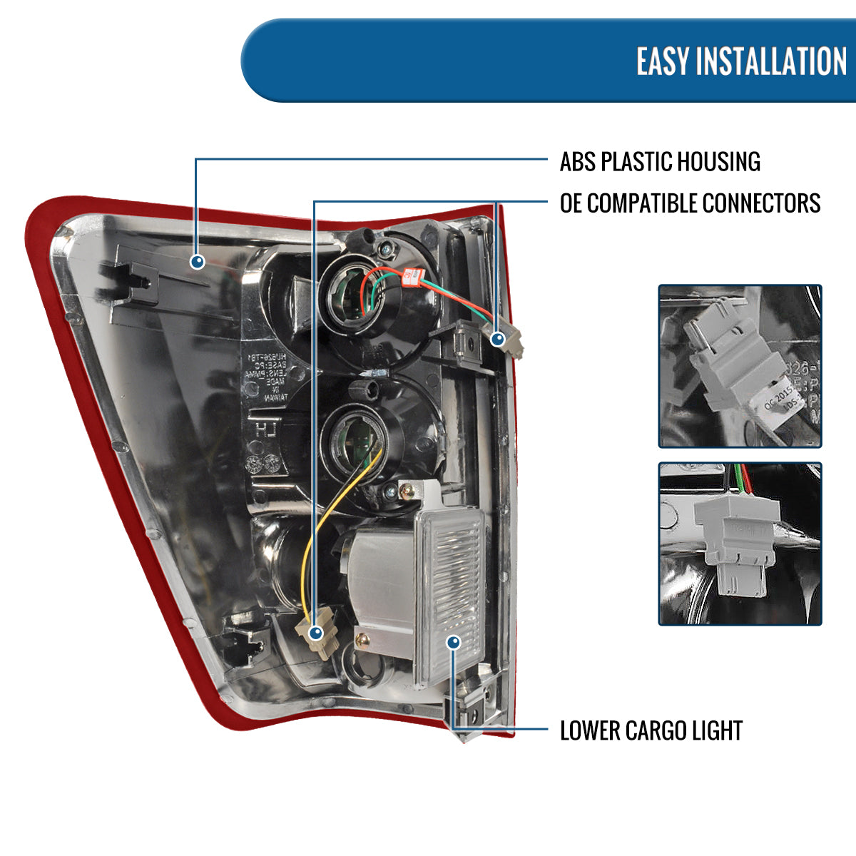 Ronnin - Fits 2004-2015 Nissan Titan First Gen Pickup Truck LED Integrated Brake and Turn Signals Tail Lights Assembly Replacement Pair | Red