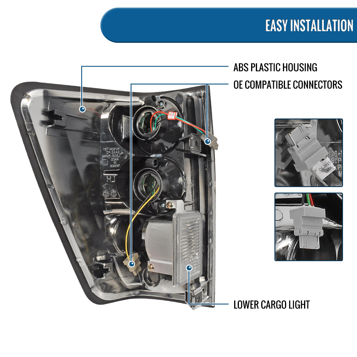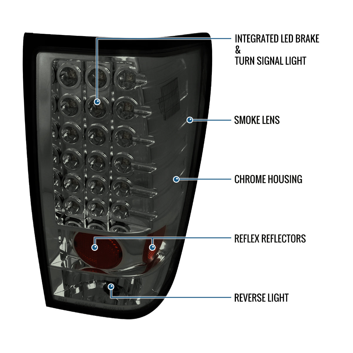 Ronnin - Fits 2004-2015 Nissan Titan First Gen Pickup Truck LED Integrated Brake and Turn Signals Tail Lights Assembly Replacement Pair | Smoke