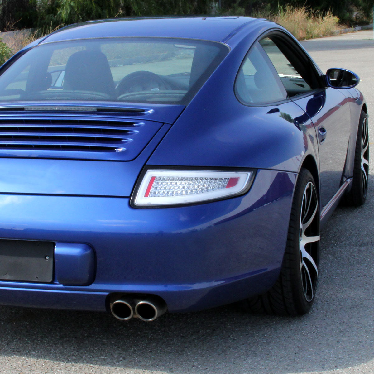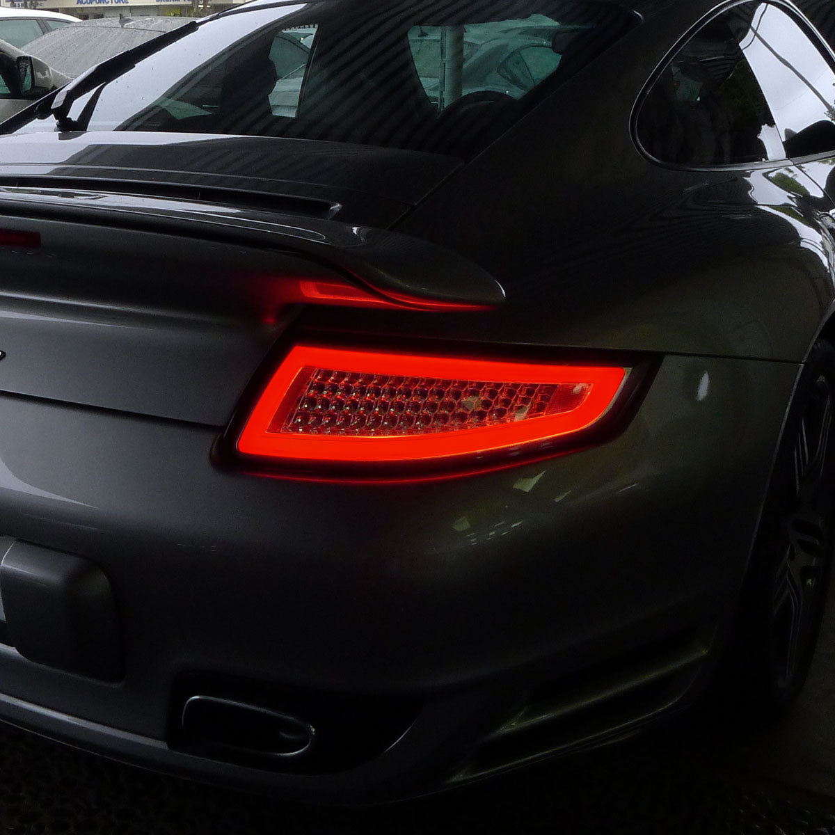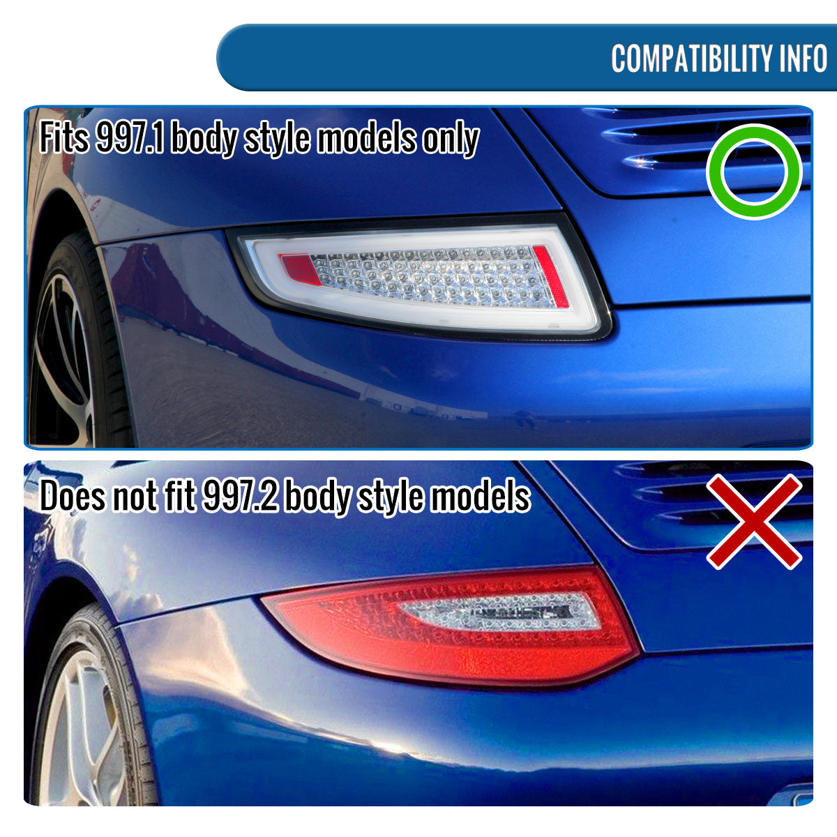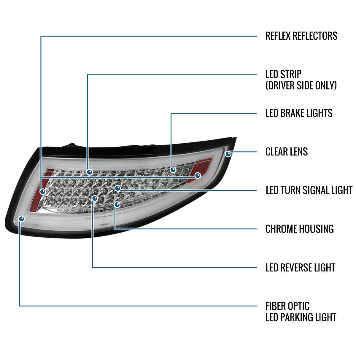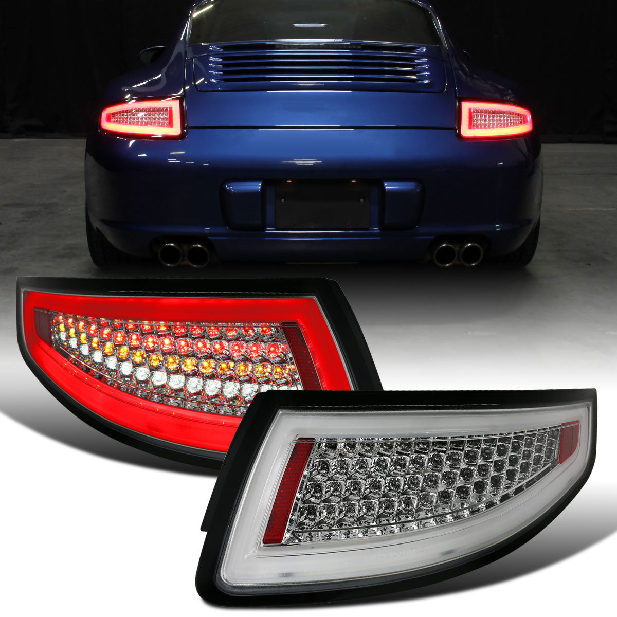 Ronnin - Fits 2005-2008 Porsche 911 997 Carrera Targa 2007-2009 Porsche 911 GT2 GT3 Turbo Upgraded Full LED Tail Lights Replacement Assembly Pair | Chrome | White Tube