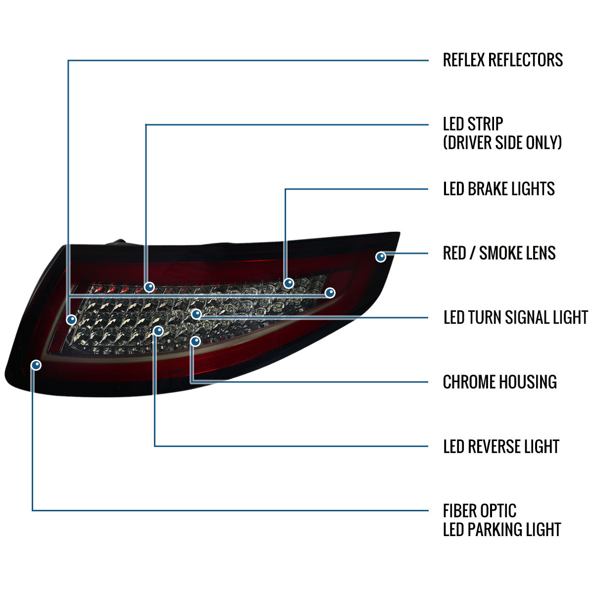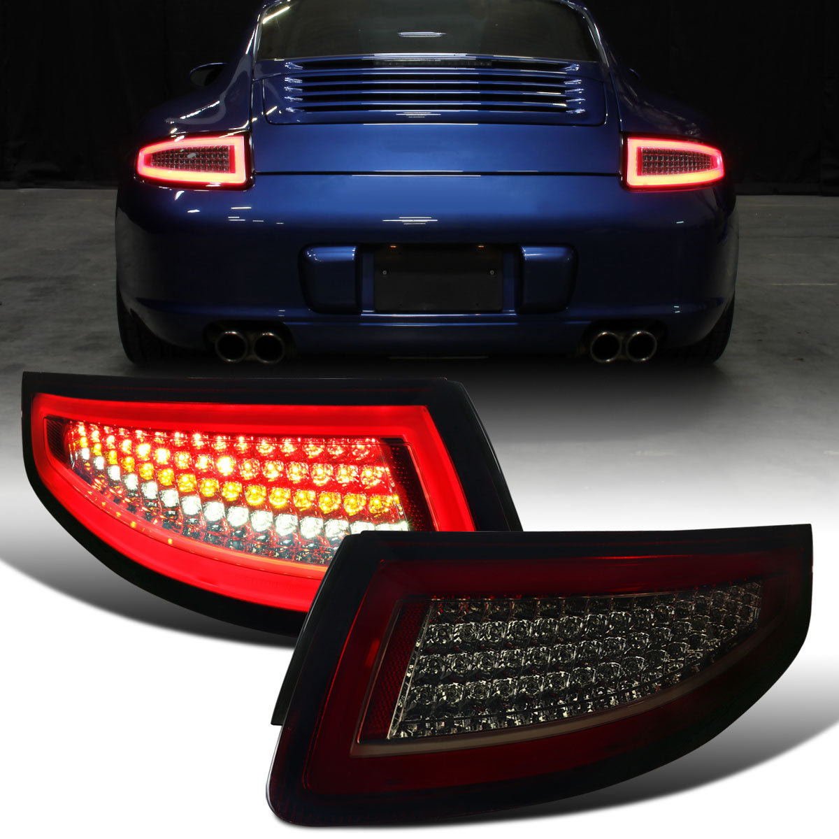 Ronnin - Fits 2005-2008 Porsche 911 997 Carrera Targa 2007-2009 Porsche 911 GT2 GT3 Turbo Upgraded Full LED Tail Lights Replacement Assembly Pair | Smoke