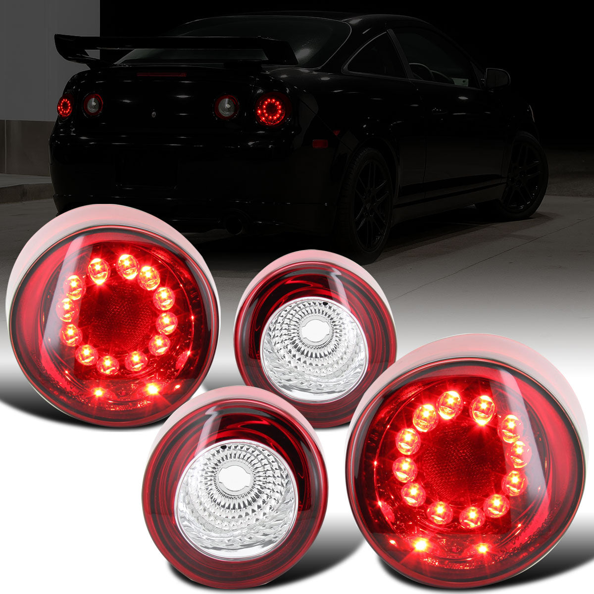 Ronnin - Fits 2005-2010 Chevy Cobalt Coupe Integrated LED Brake and Turn Signals Tail Lights Replacement Pair | Red