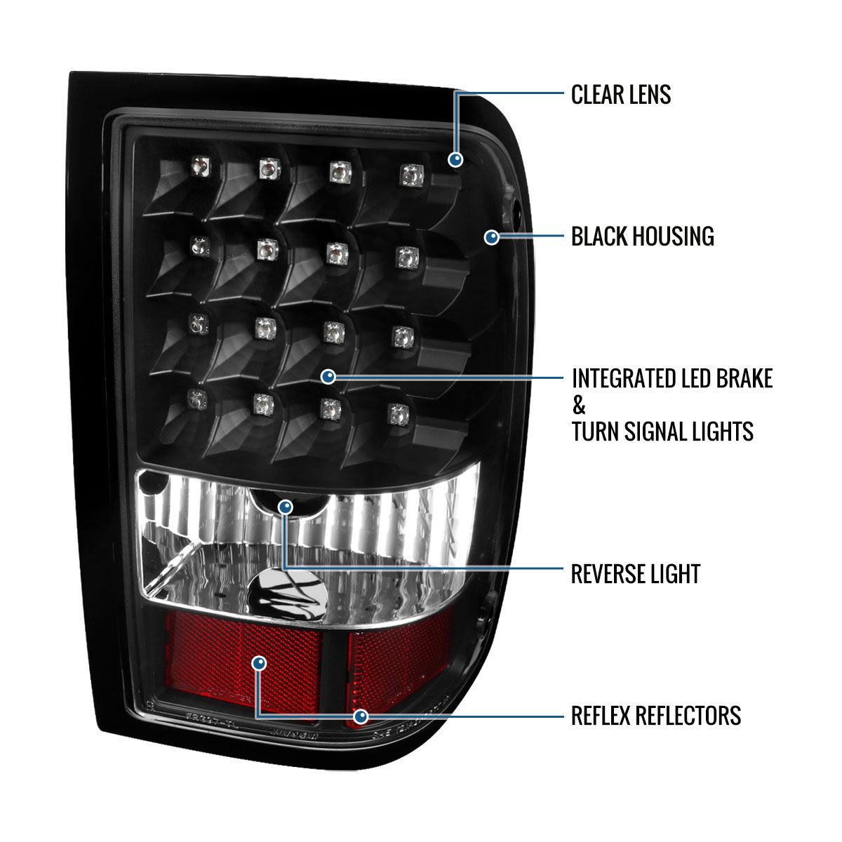Ronnin - Fits 2006-2011 Ford Ranger Pickup LED Tail Lights Integrated LED Brake and Signal Lamps Pair | Black
