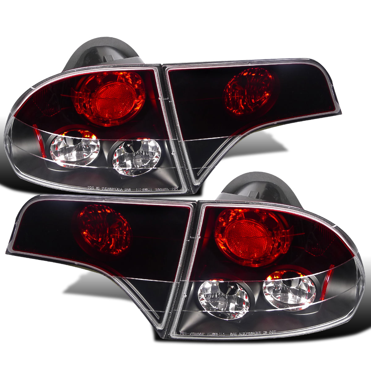 Ronnin - Fits 2006-2011 Honda Civic Sedan 4 Door Factory Replacement Tail Lights Assembly Pair | Black Red