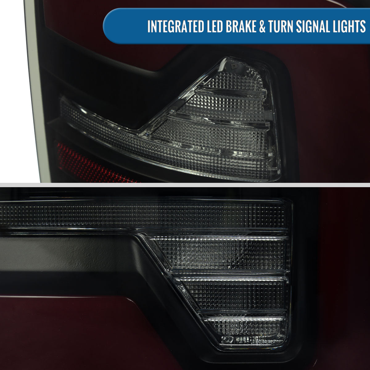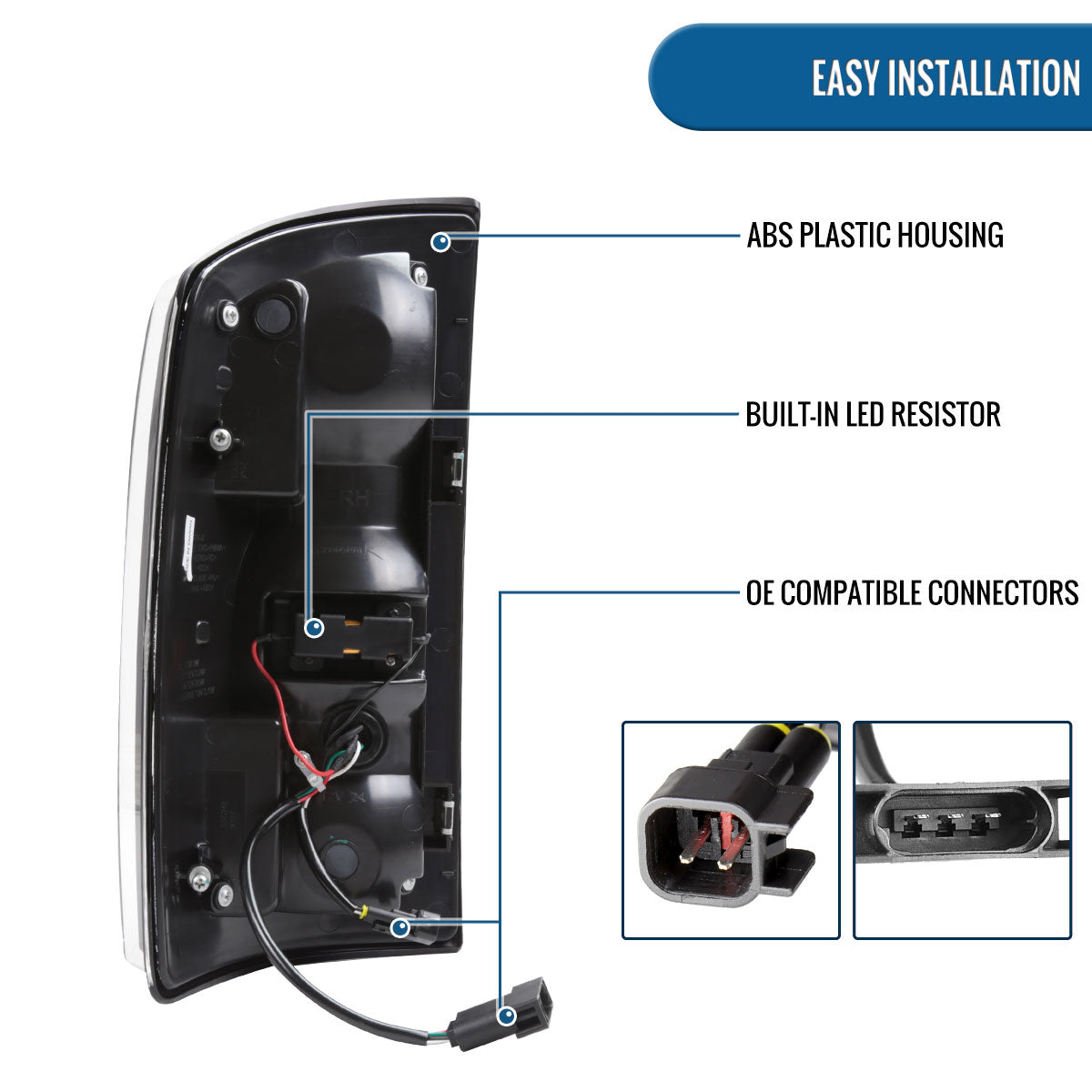 Ronnin - Fits 2007-2009 Dodge Ram 1500 2500 3500 Upgraded Full LED Integrated Brake Lamps and Turn Signal Tail Lights Assembly Replacement Pair | Black Smoke