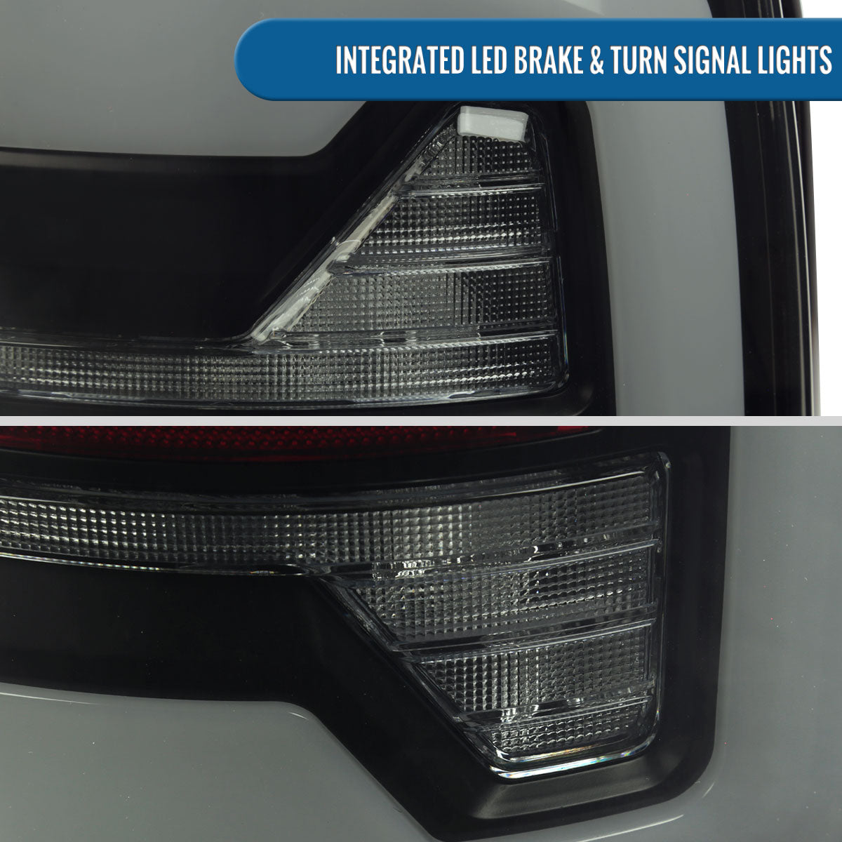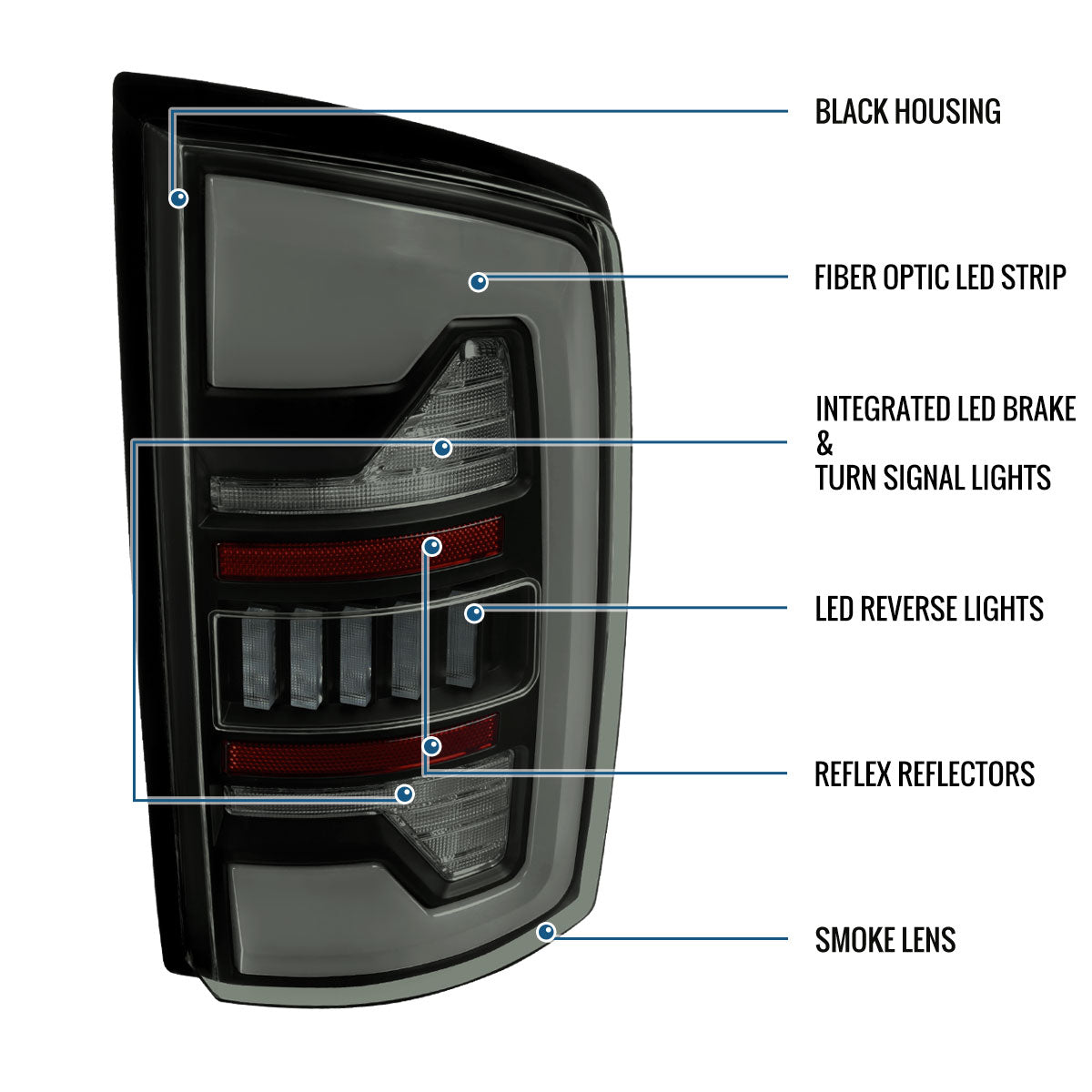 Ronnin - Fits 2007-2009 Dodge Ram 1500 2500 3500 Upgraded Full LED Integrated Brake Lamps and Turn Signal Tail Lights Assembly Replacement Pair | Black Smoke | White Tube