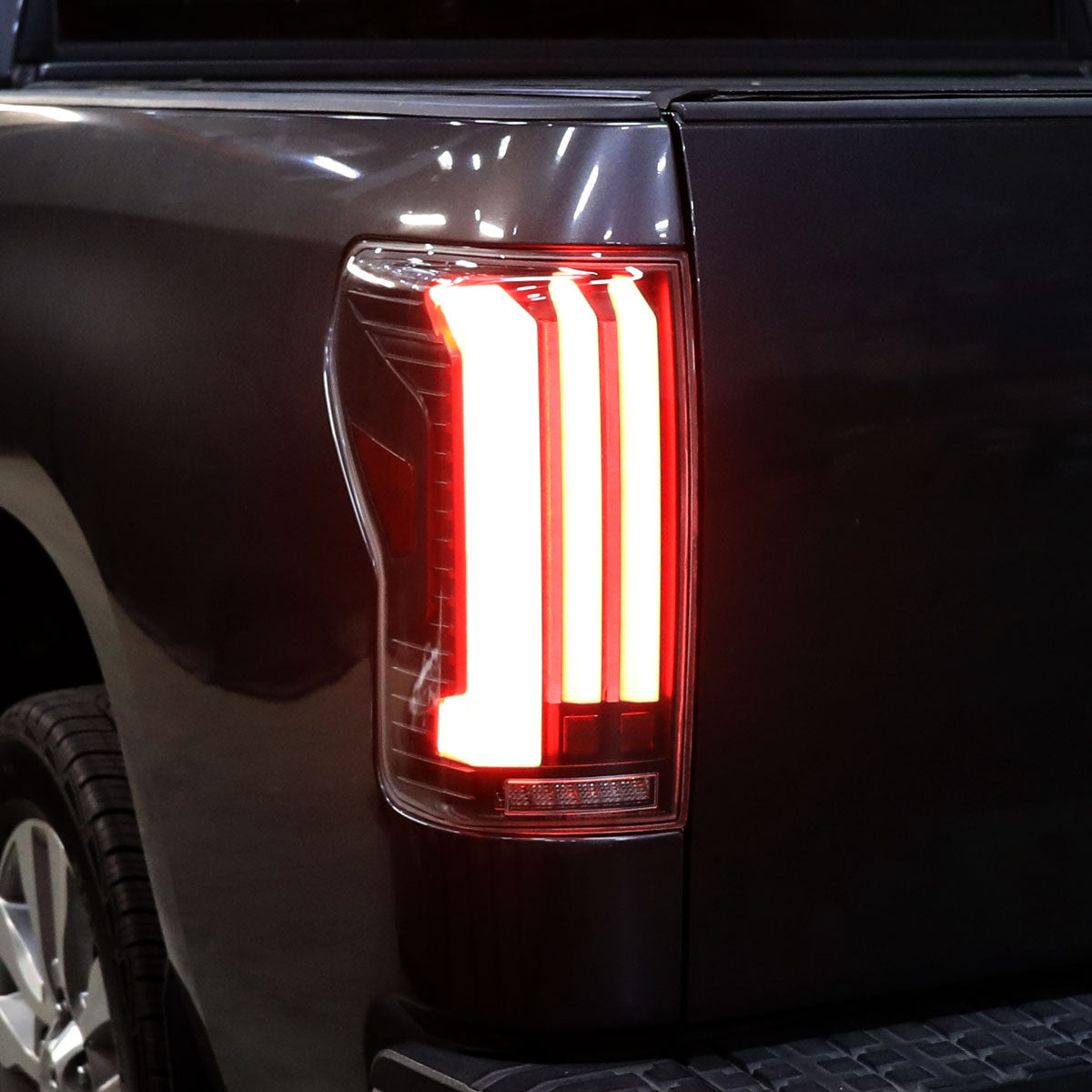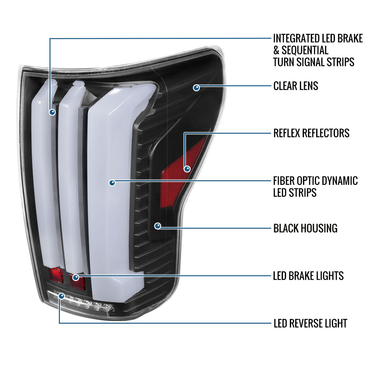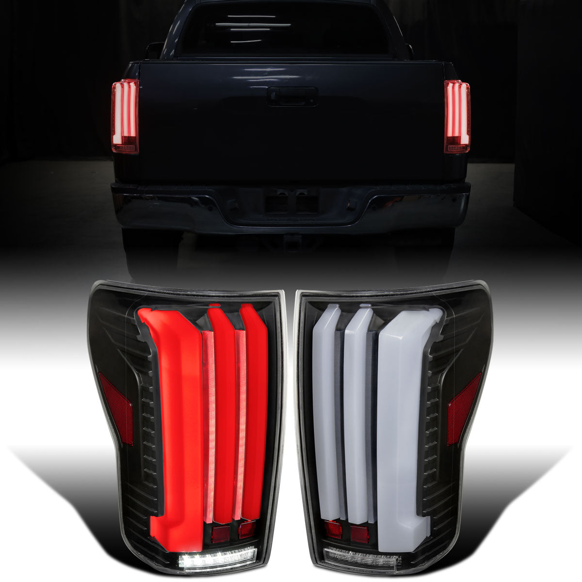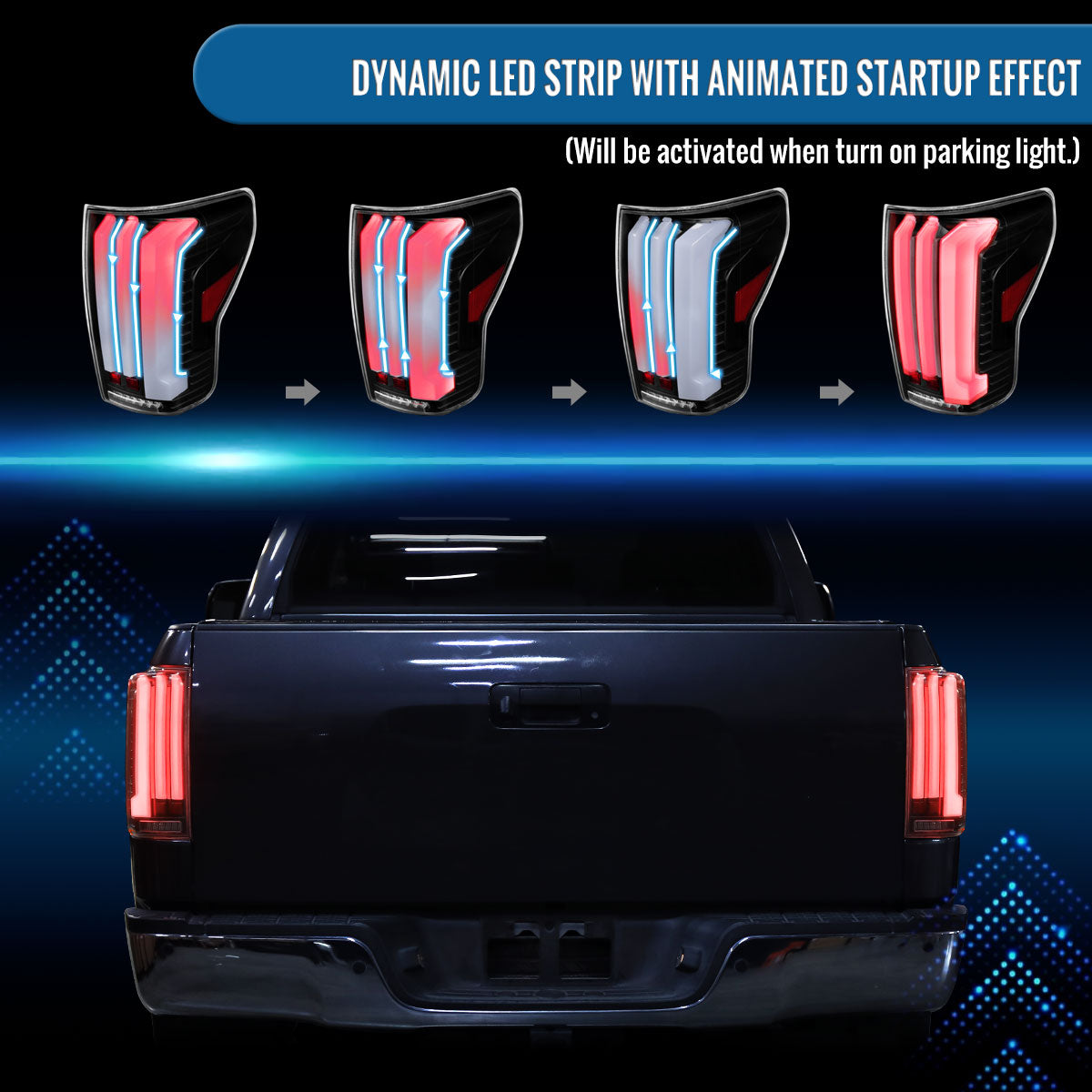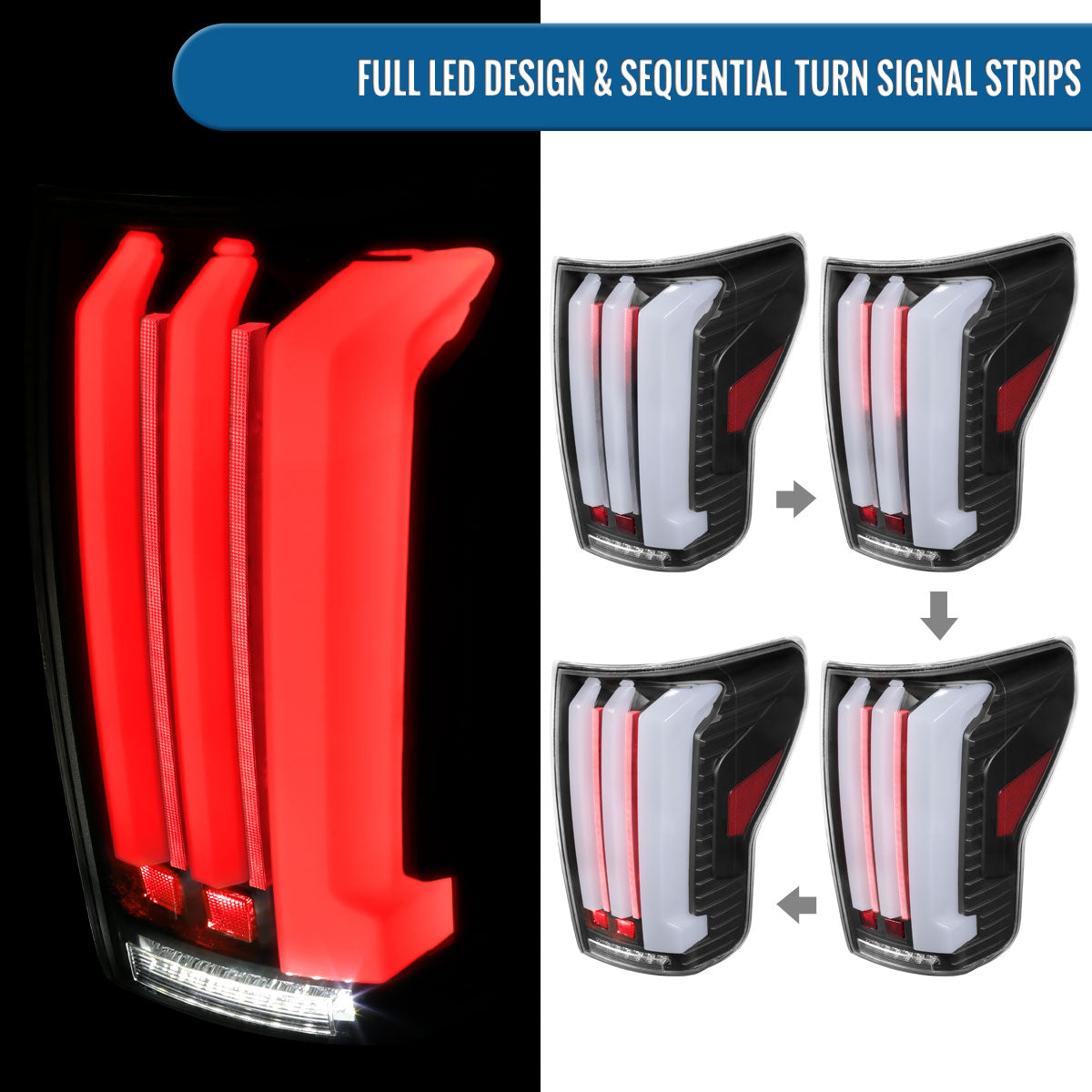 Ronnin - Fits 2007-2013 Toyota Tundra Pickup Truck Full LED Tail Lights Integrated Brake and Sequential Turn Signals + Animated Startup Effect Parking Assembly Pair | Black