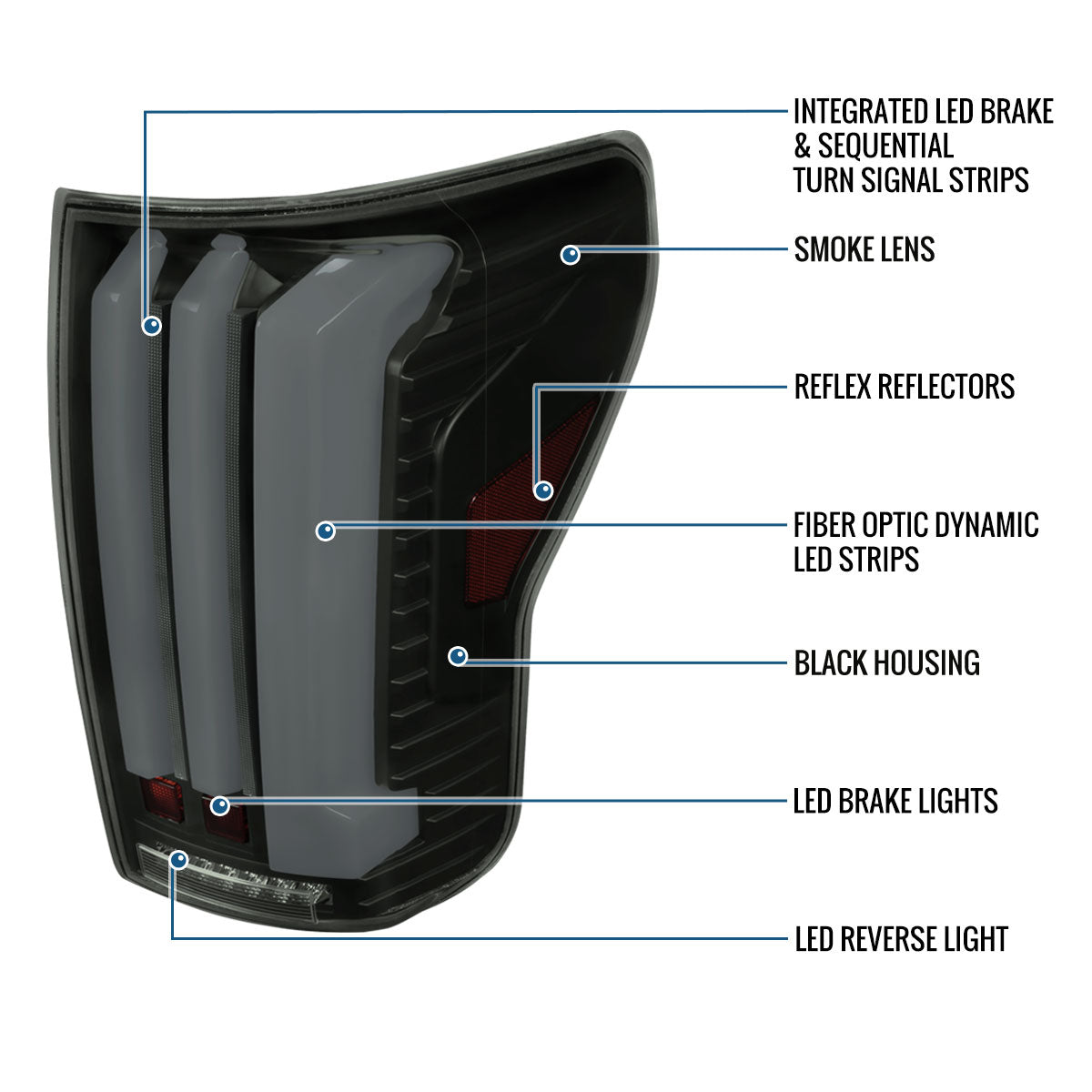 Ronnin - Fits 2007-2013 Toyota Tundra Pickup Truck Full LED Tail Lights Integrated Brake and Sequential Turn Signals + Animated Startup Effect Parking Assembly Pair | Black Smoke | White Tube