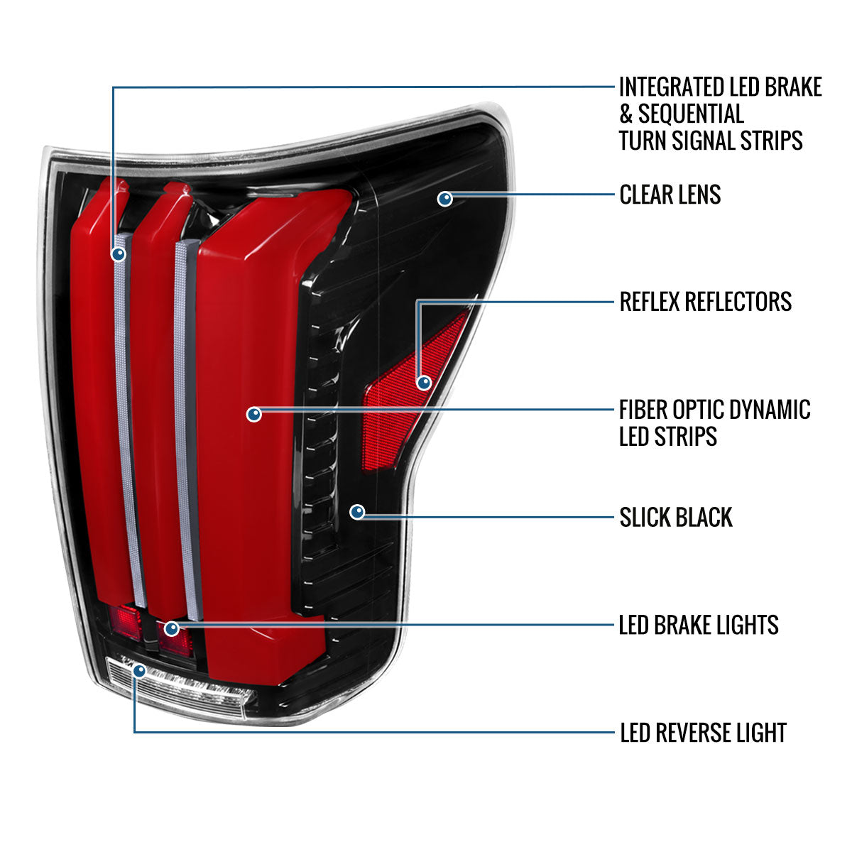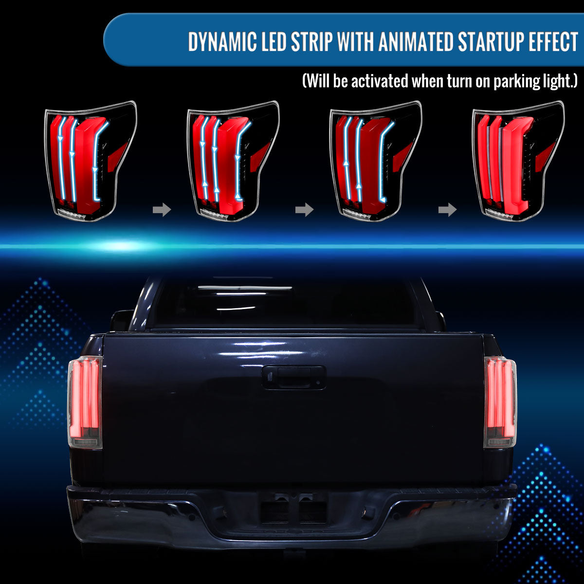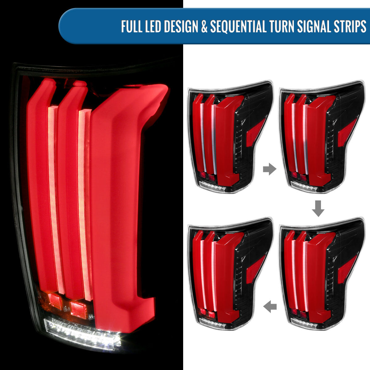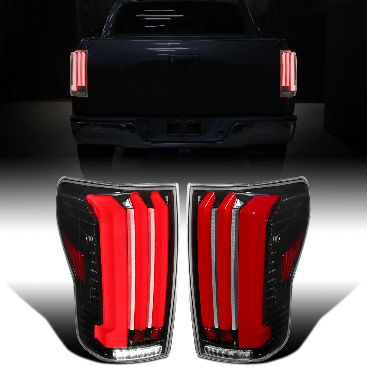 Ronnin - Fits 2007-2013 Toyota Tundra Pickup Truck Full LED Tail Lights Integrated Brake and Sequential Turn Signals + Animated Startup Effect Parking Assembly Pair | Glossy Black