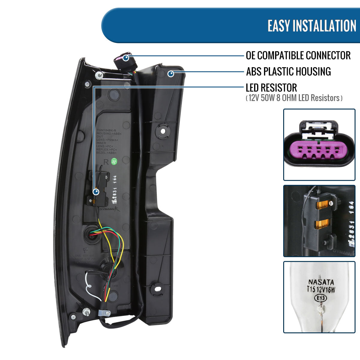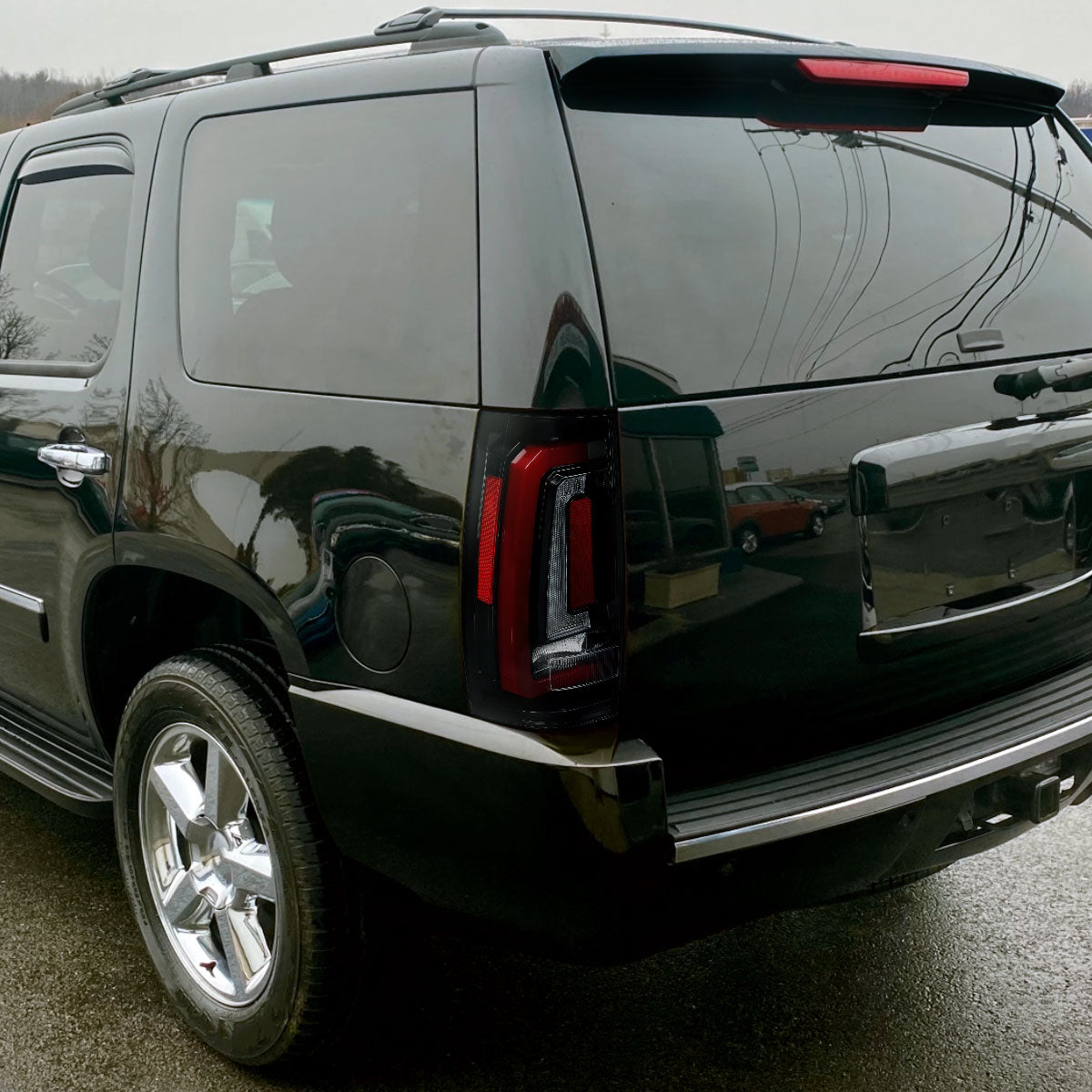 Ronnin - Fits 2007-2014 Chevy Tahoe Suburban GMC Yukon Denali XL Tail Lights LED Integrated Brake and Sequential Turn Signals + Animated Startup Effect Assembly Pair | Glossy Black