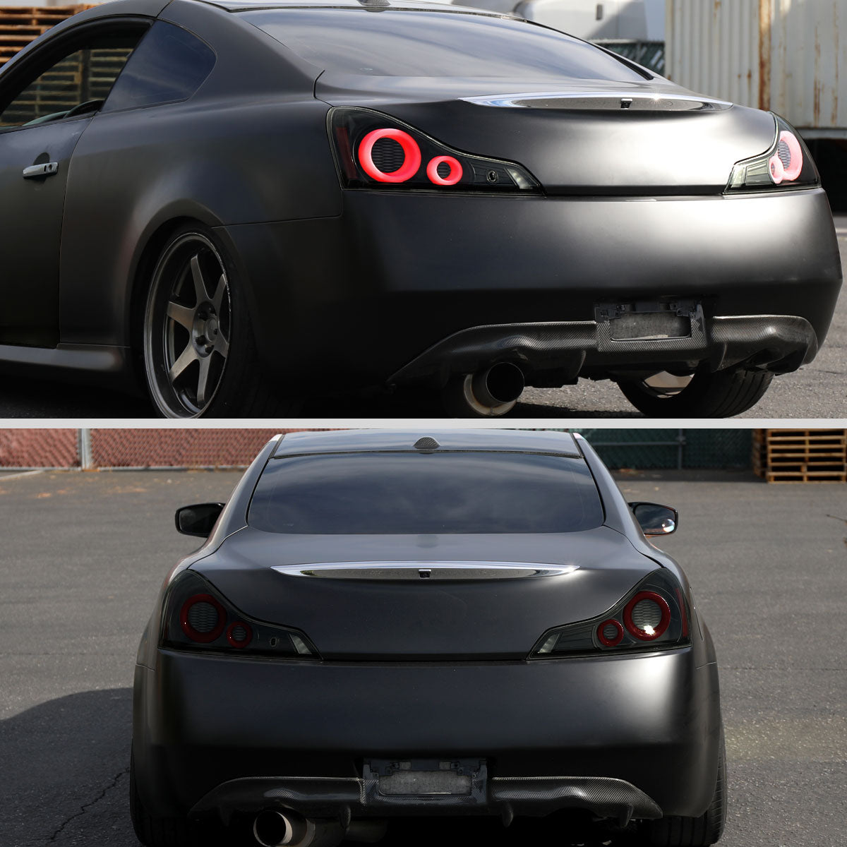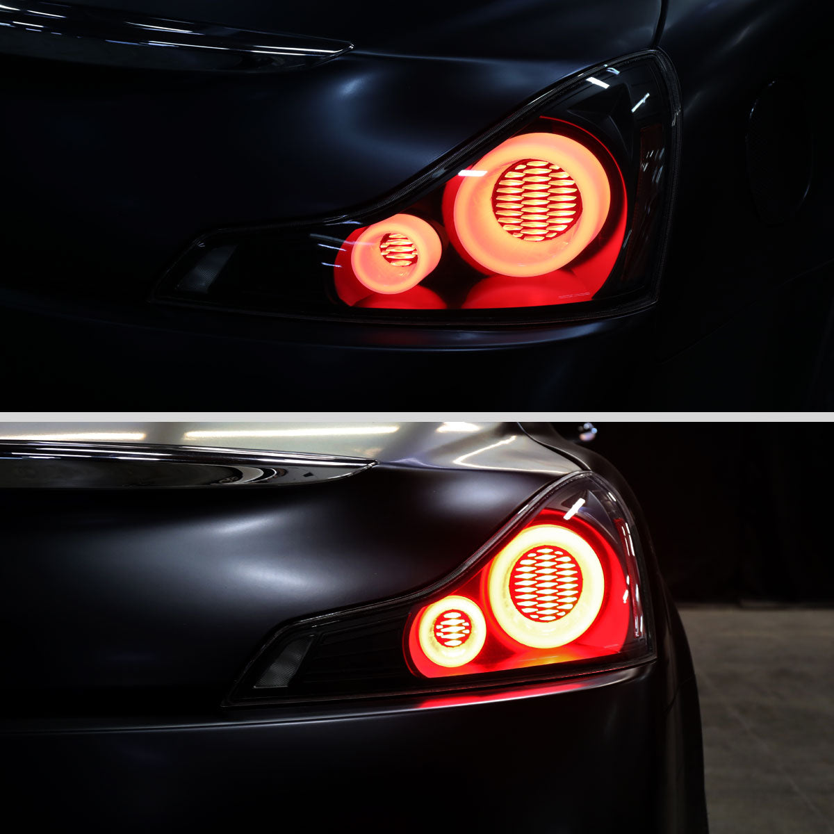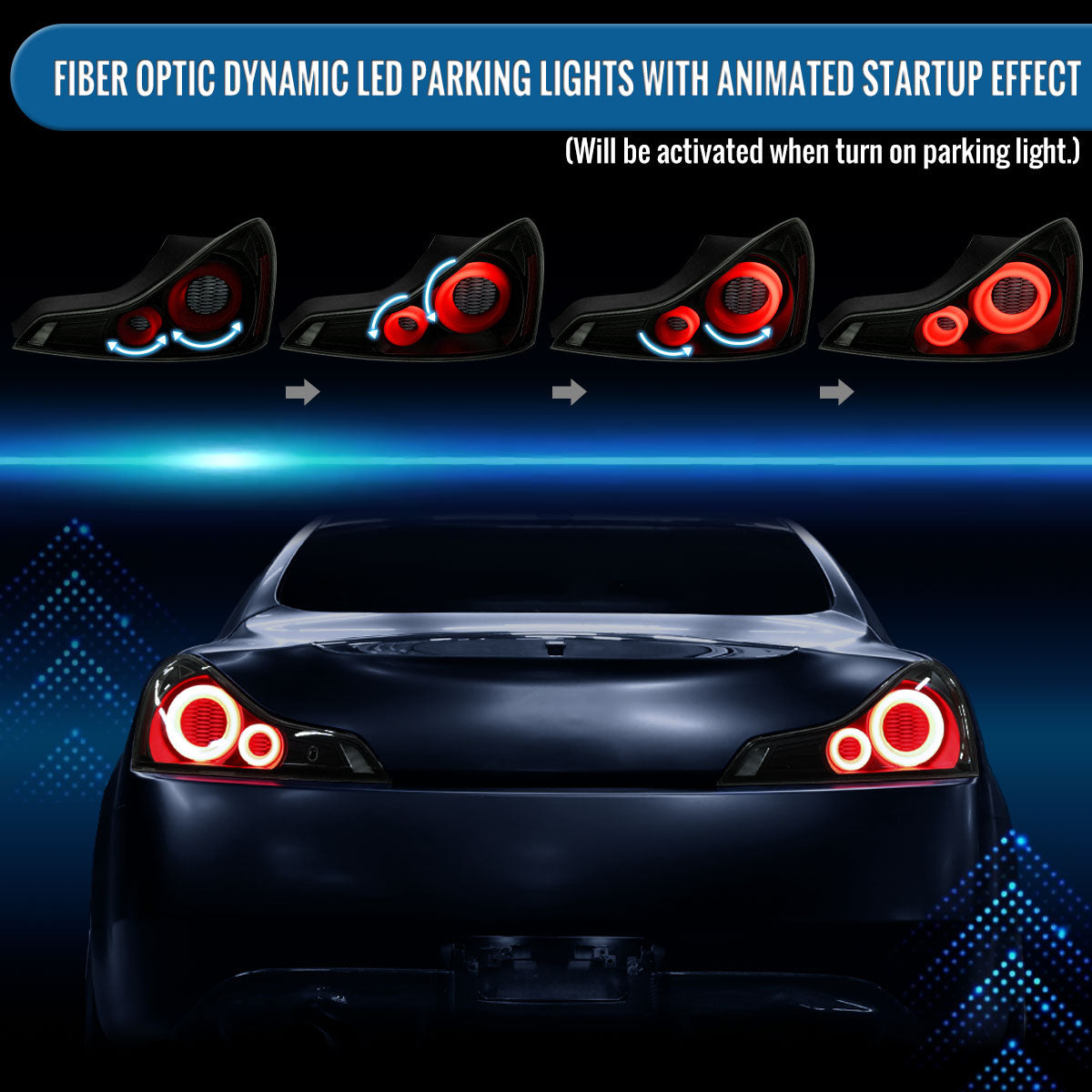 Ronnin - Fits 2008-2013 Infiniti G37 Coupe 2014-2015 Infiniti Q60 Coupe Upgraded Replacement Full LED Tail Lights Animated Startup Effect + Sequential Signal Lamps Assembly Pair | Black Smoke