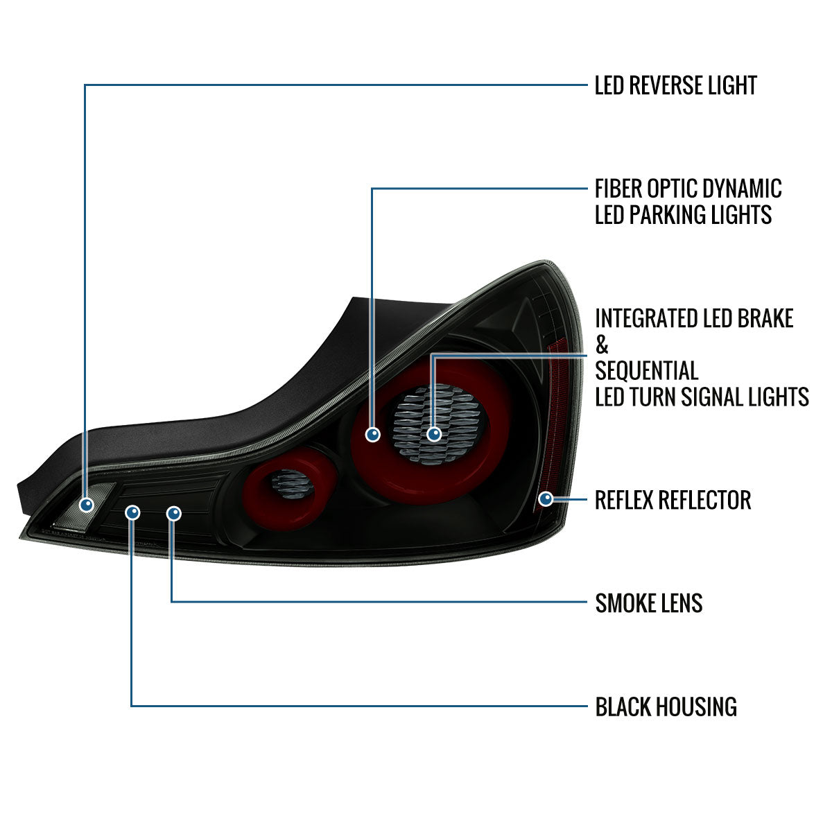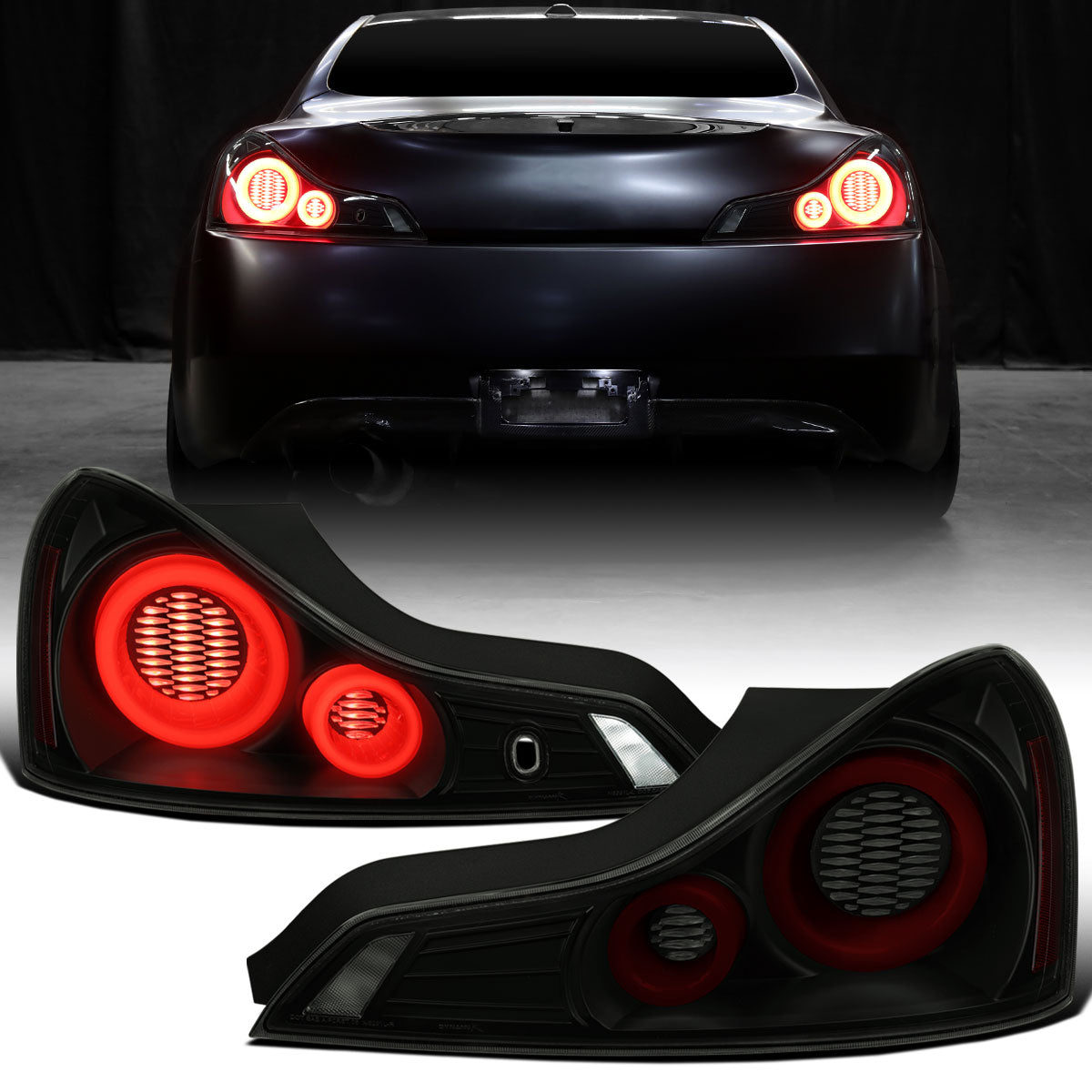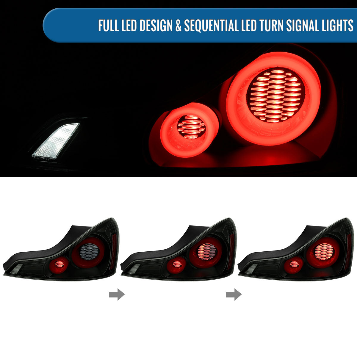 Ronnin - Fits 2008-2013 Infiniti G37 Coupe 2014-2015 Infiniti Q60 Coupe Upgraded Replacement Full LED Tail Lights Animated Startup Effect + Sequential Signal Lamps Assembly Pair | Black Smoke