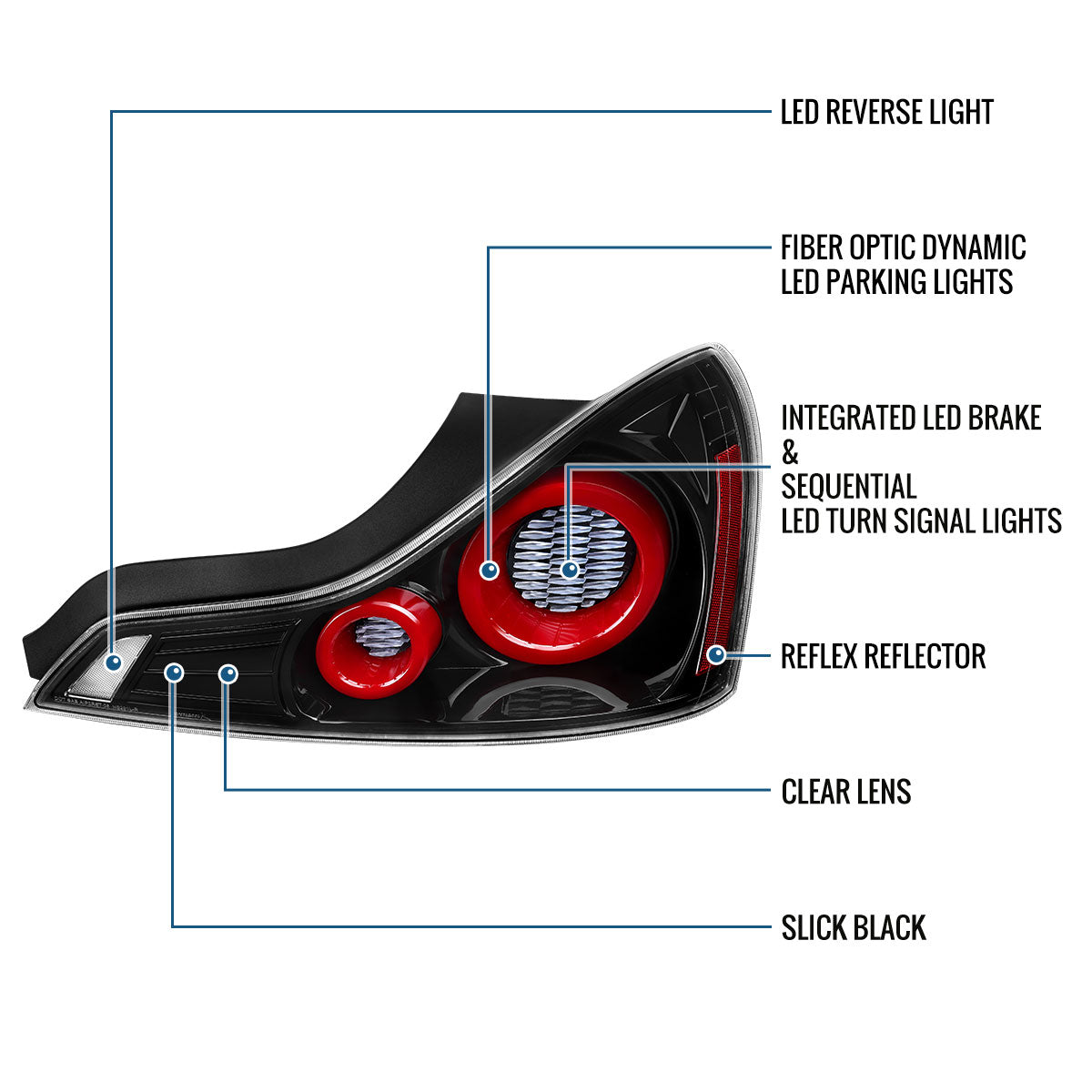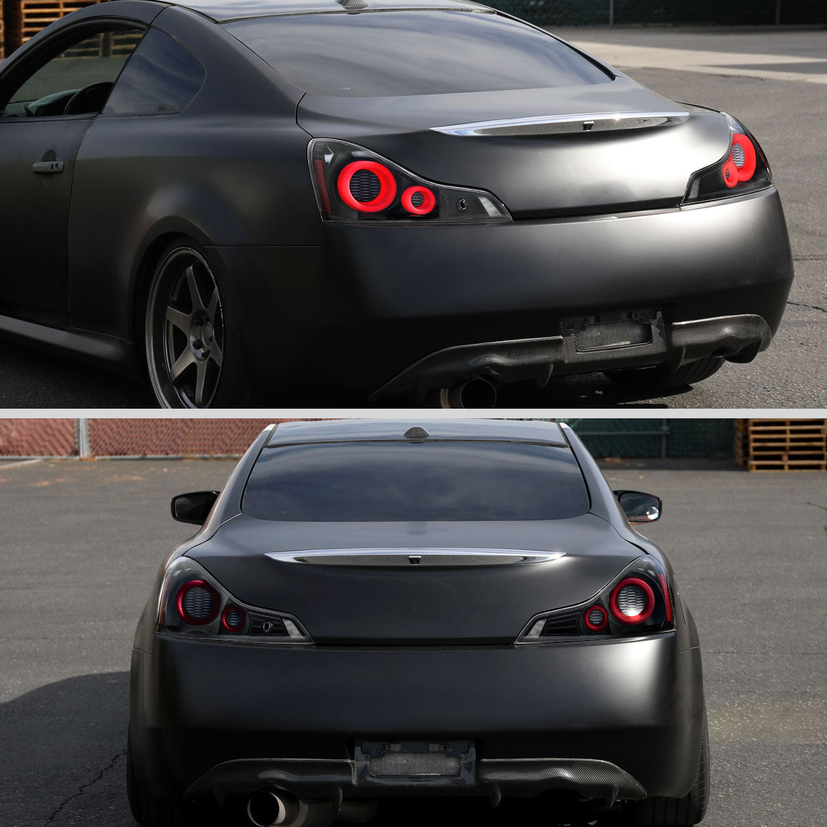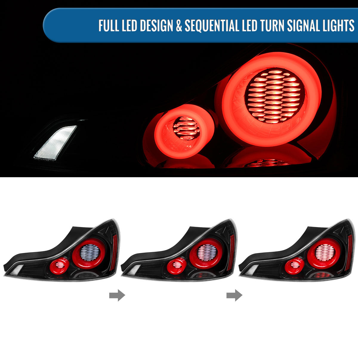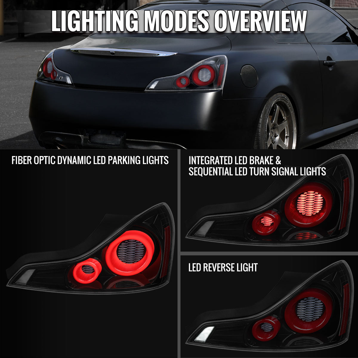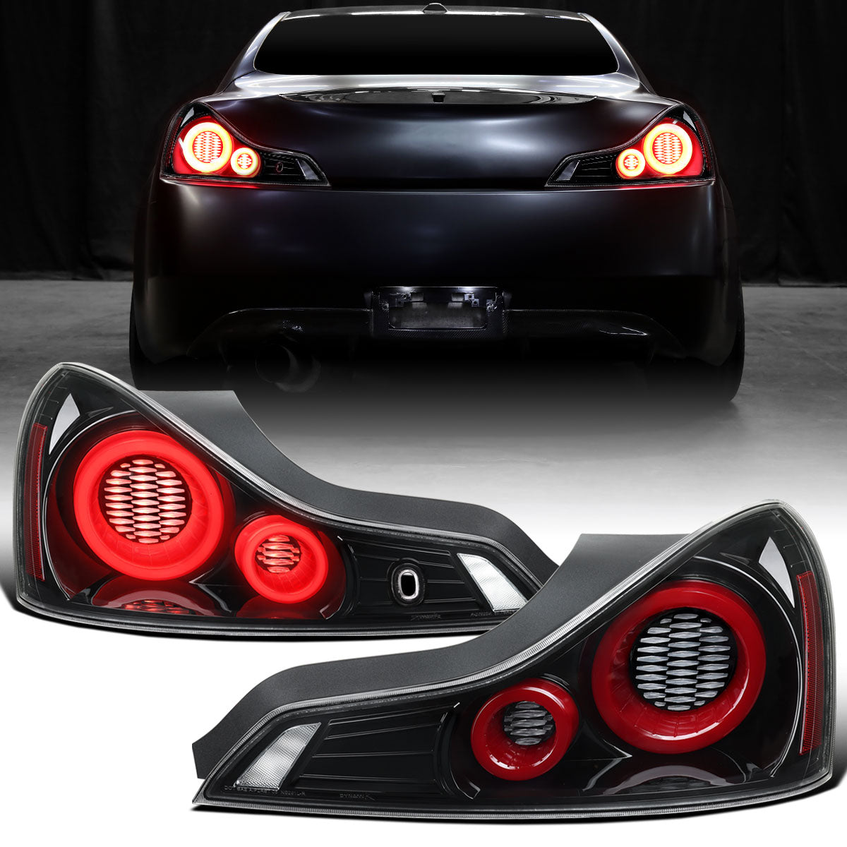 Ronnin - Fits 2008-2013 Infiniti G37 Coupe 2014-2015 Infiniti Q60 Coupe Upgraded Replacement Full LED Tail Lights Animated Startup Effect + Sequential Signal Lamps Assembly Pair | Gloss Black
