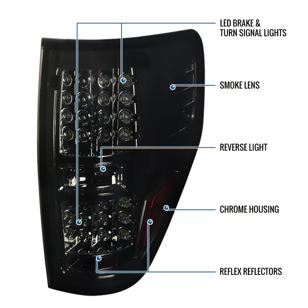 Ronnin - Fits 2009-2014 Ford F150 Upgrade Tail Lights Assembly LED Integrated Brake and Turn Signal Lights Pair | Smoke