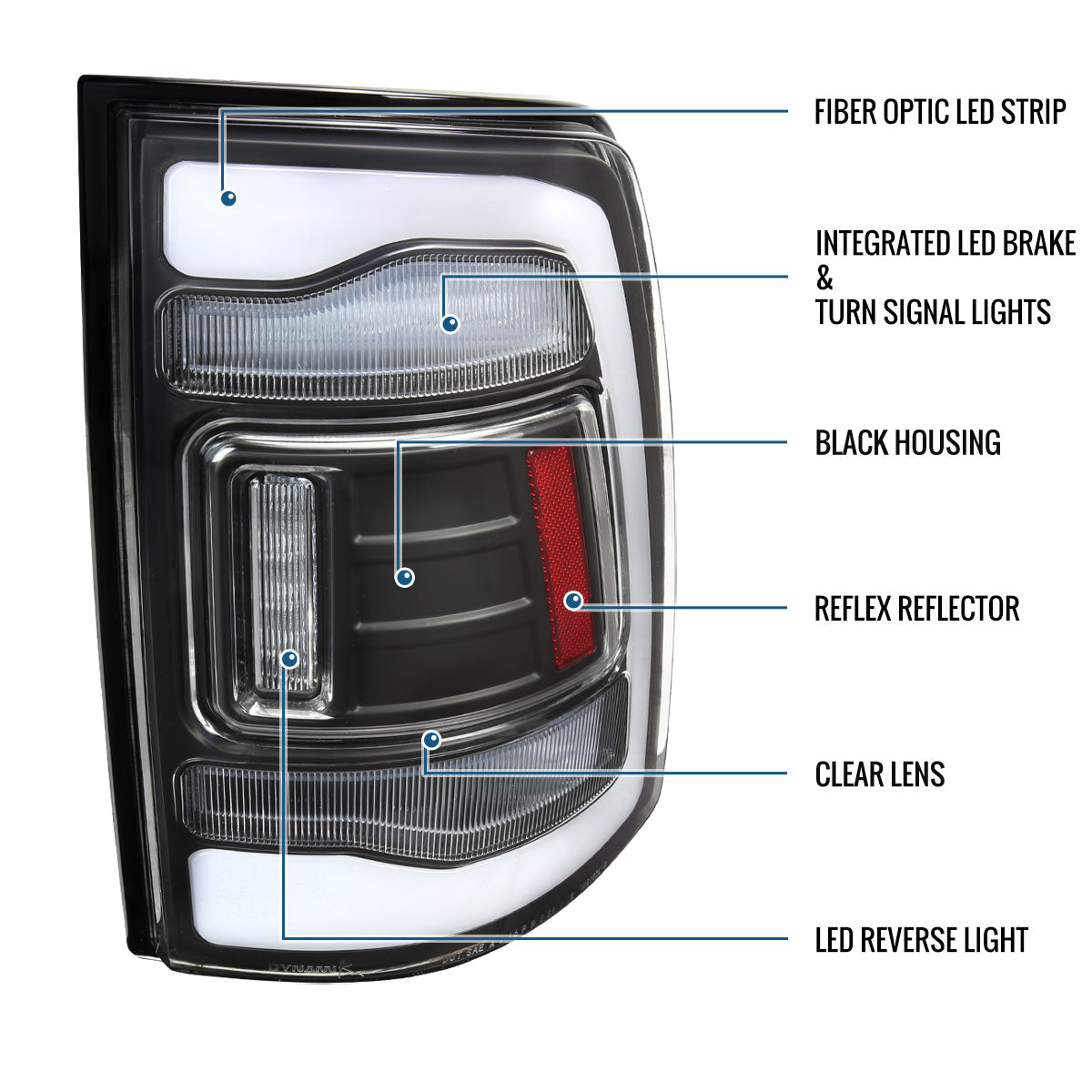 Ronnin - Fits 2009-2018 Ram 1500 2010-2018 Ram 2500 3500 2019-2022 1500 Classic Full LED Tail Lights Integrated LED Brake and Turn Signal Lamps Assembly Pair | Black | White Tube