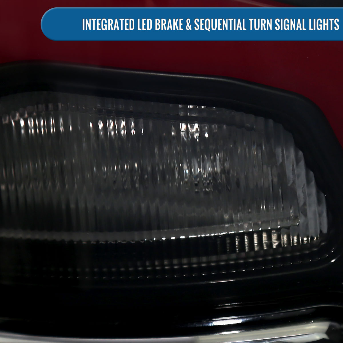 Ronnin - Fits 2013-2018 Ram 1500 2500 3500 2019-2022 Ram 1500 Classic Full LED Tail Lights Integrated Brake and Sequential Turn Signals + Animated Startup Effect Assembly Pair | Black Smoke