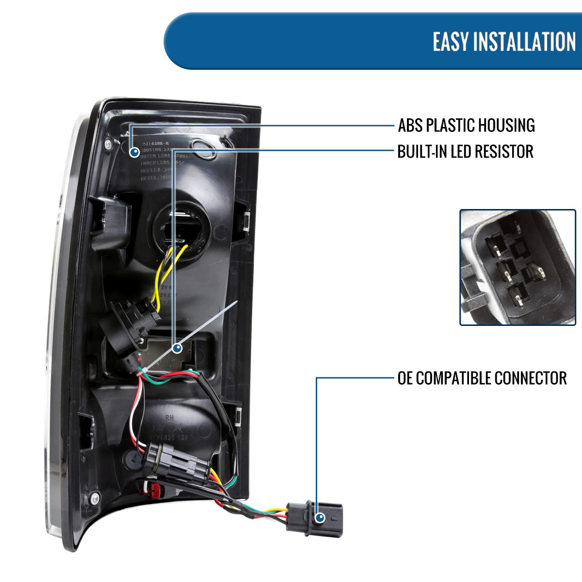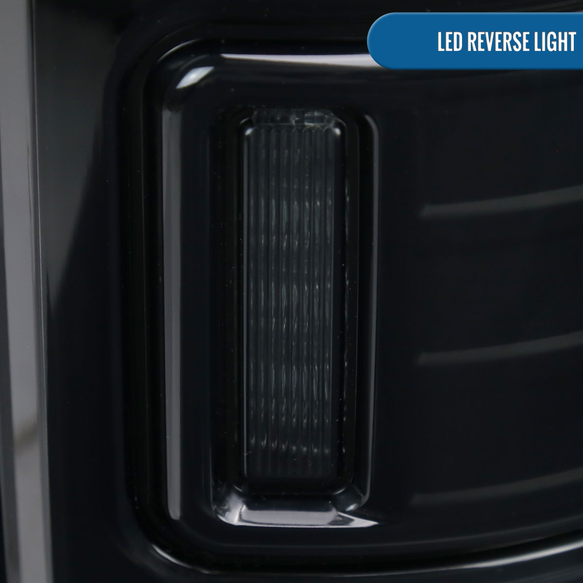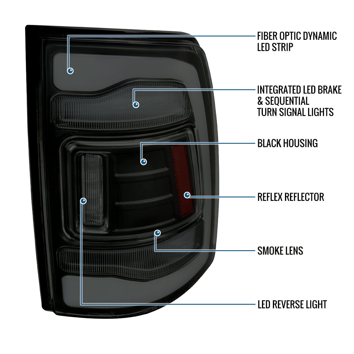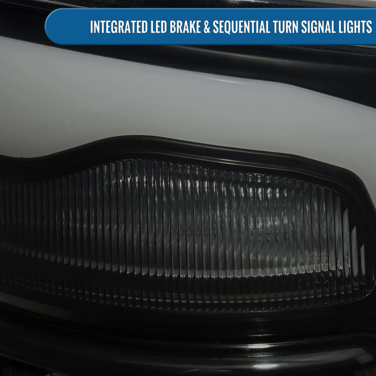 Ronnin - Fits 2013-2018 Ram 1500 2500 3500 2019-2022 Ram 1500 Classic Full LED Tail Lights Integrated Brake and Sequential Turn Signals + Animated Startup Effect Pair | Black Smoke | White Tube
