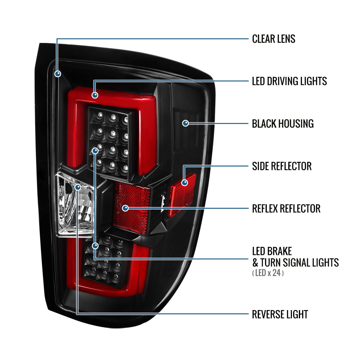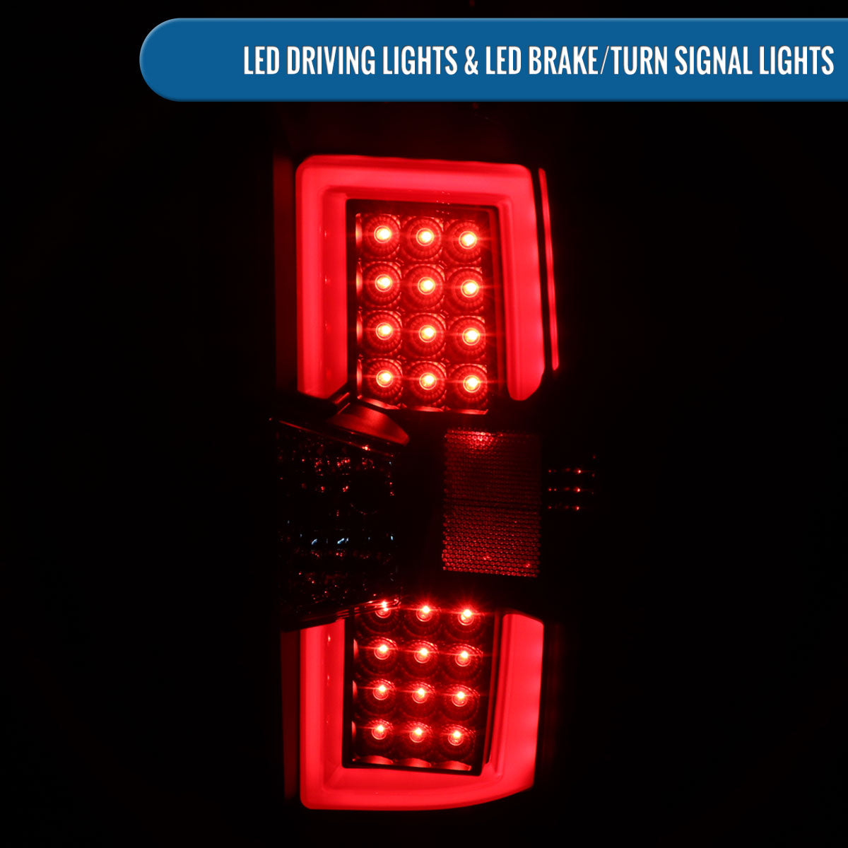 Ronnin - Fits 2014-2018 Silverado 1500 2500HD 3500HD | 2015-2019 Sierra 3500HD LED Tail Lights Integrated Brake and Turn Signal Lamps Replacement Assembly Pair | Black | Red Tube
