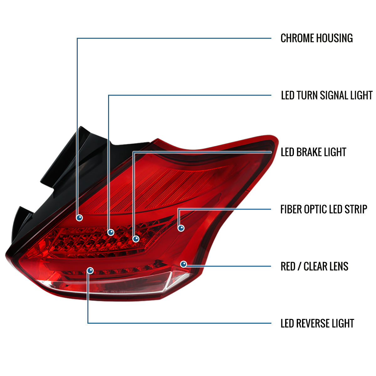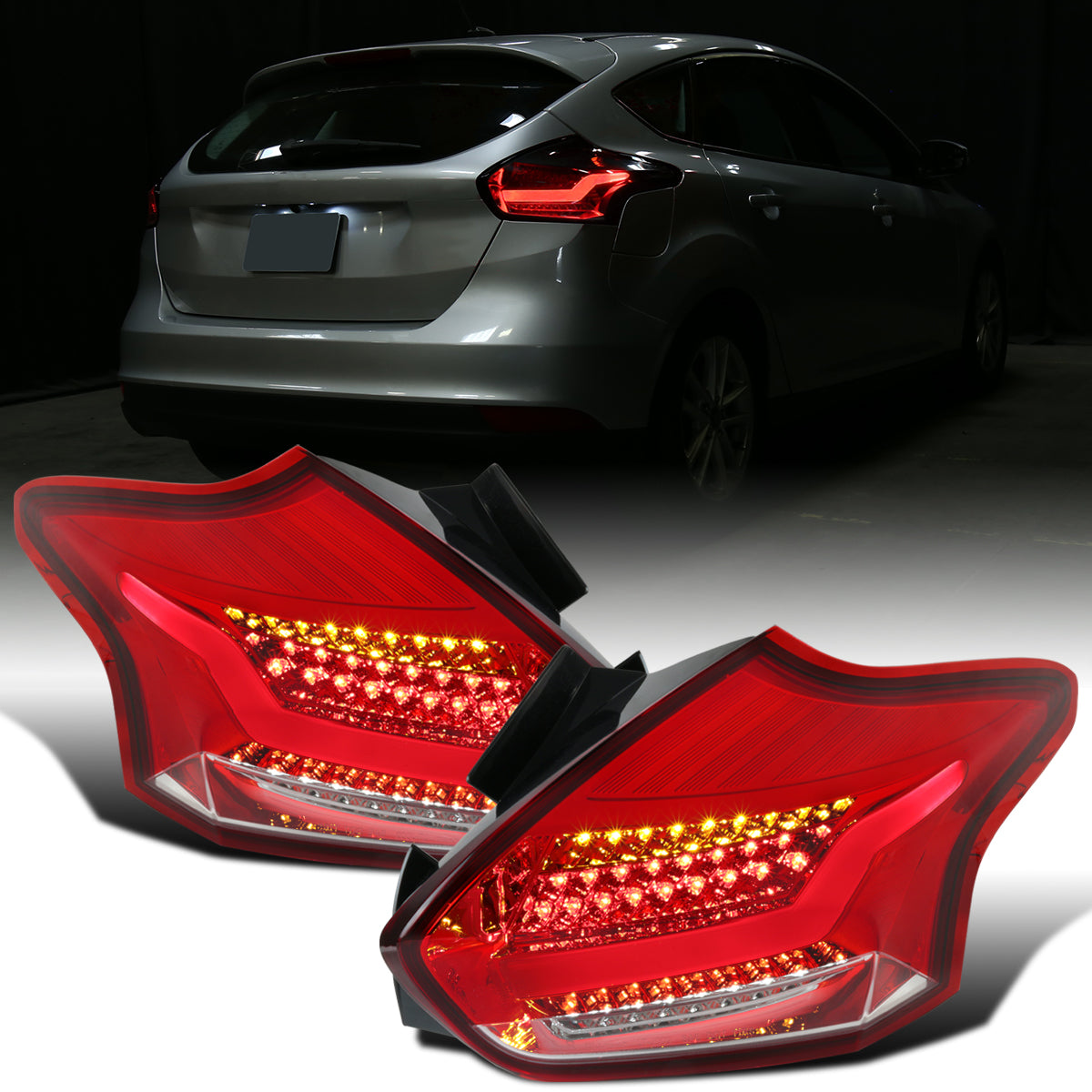 Ronnin - Fits 2015-2018 Ford Focus Hatchback US Spec Upgraded Full LED Tail Lights Assembly Pair | Red