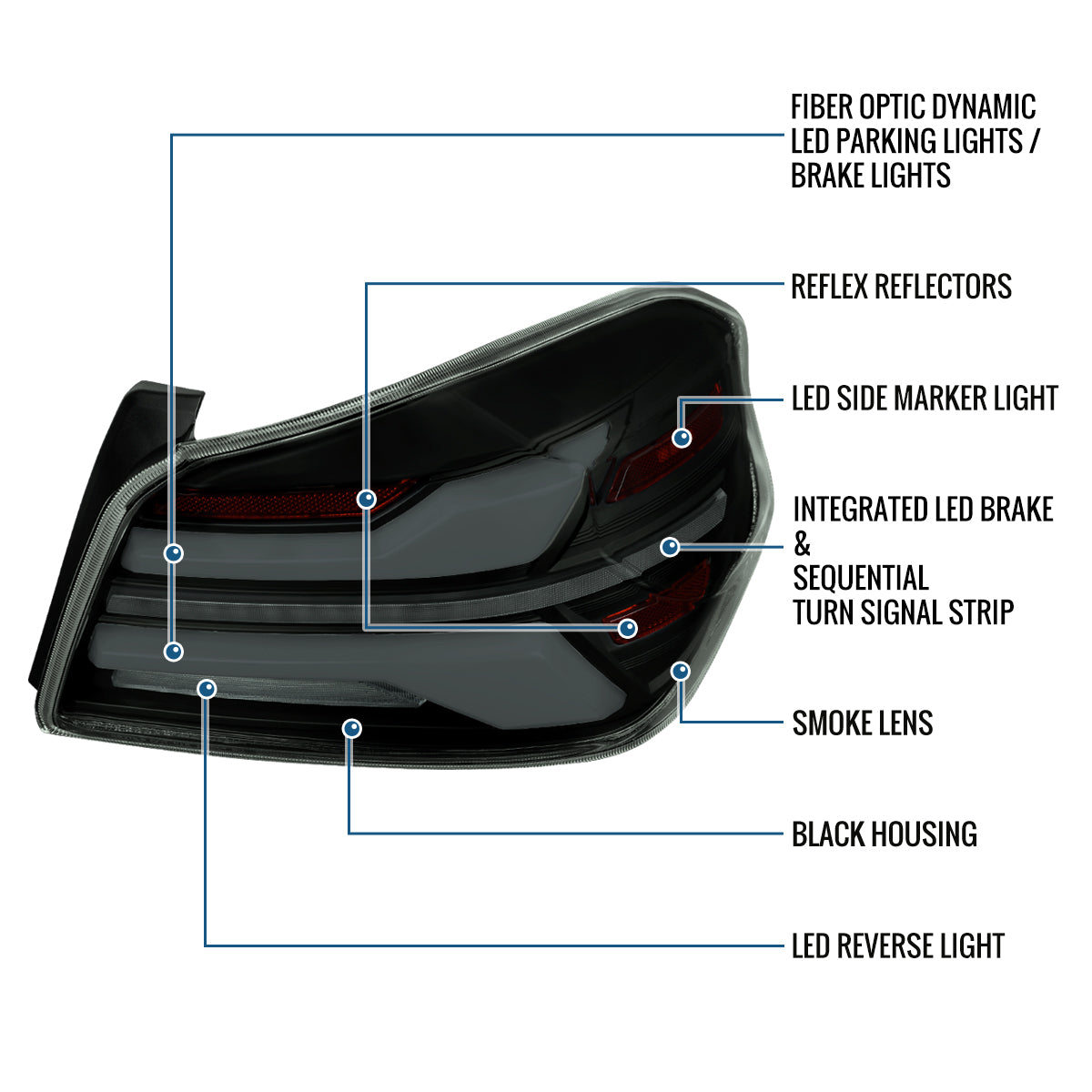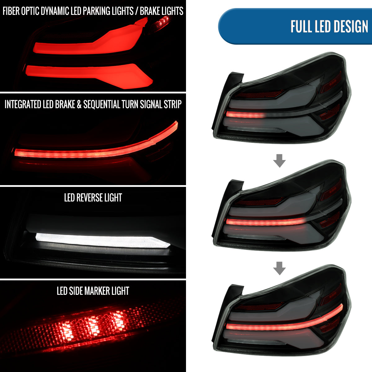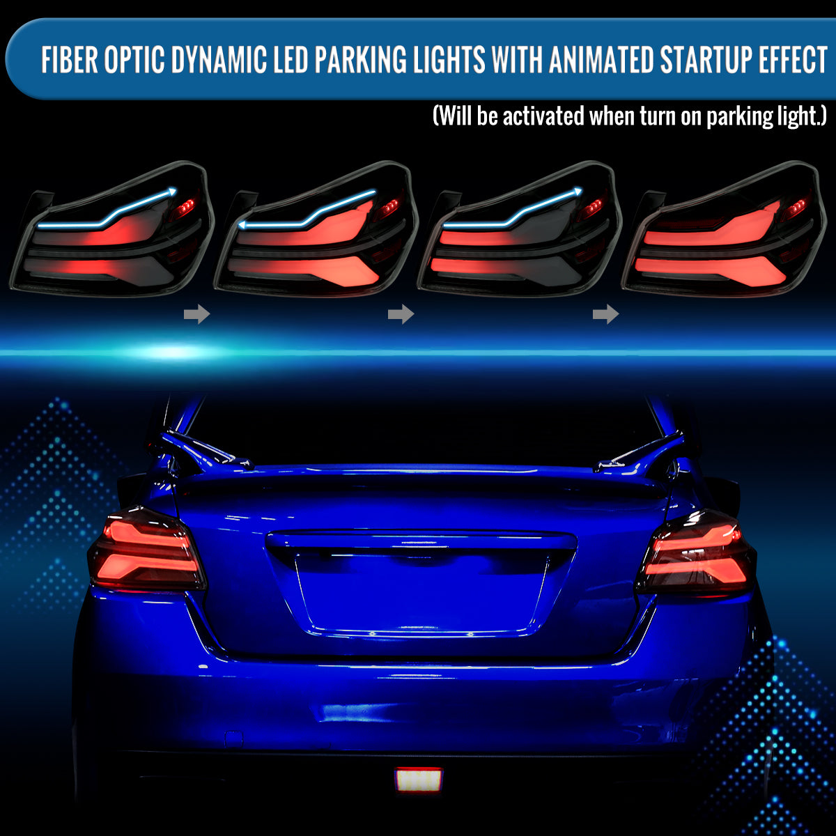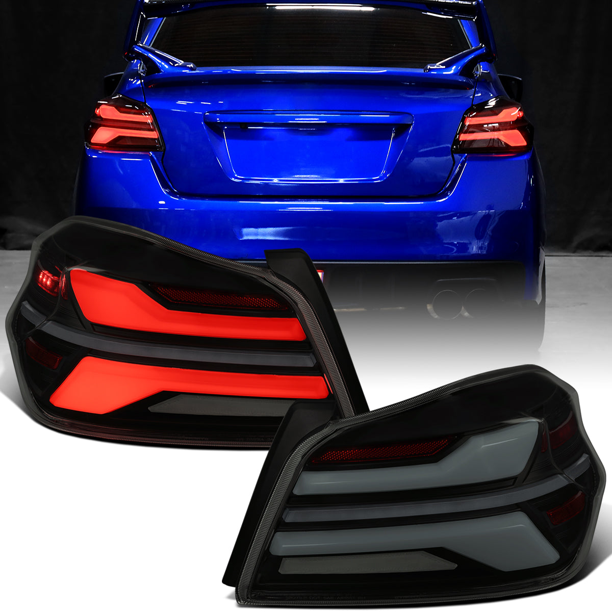 Ronnin - Fits 2015-2021 Subaru WRX | WRX STI US Spec Full LED Tail Lights Animated Startup Effect + Sequential Signal Lamps Assembly Pair | Black Smoke | White Tube