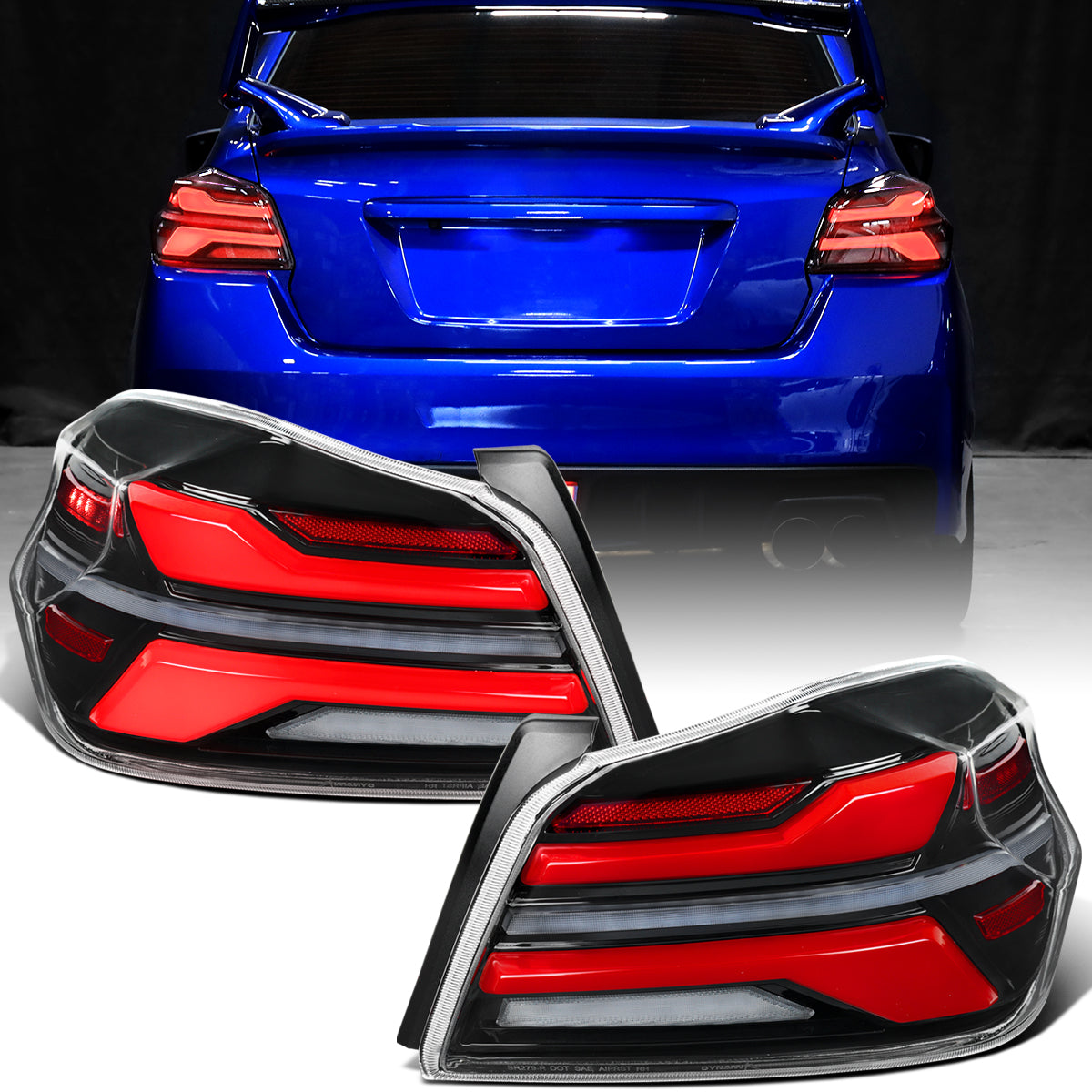 Ronnin - Fits 2015-2021 Subaru WRX | WRX STI US Spec Full LED Tail Lights Animated Startup Effect + Sequential Signal Lamps Assembly Pair | Glossy Black