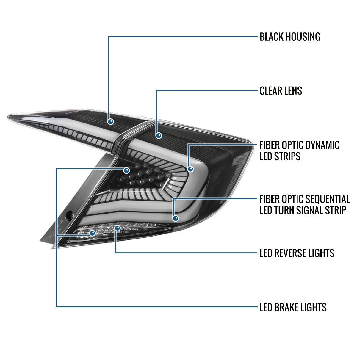 Ronnin - Fits 2016-2021 Honda Civic Sedan 4Dr Aggressive Full LED Sequential Turn Signals + Animated Startup Effect Tail Lights Assembly Pair | Black