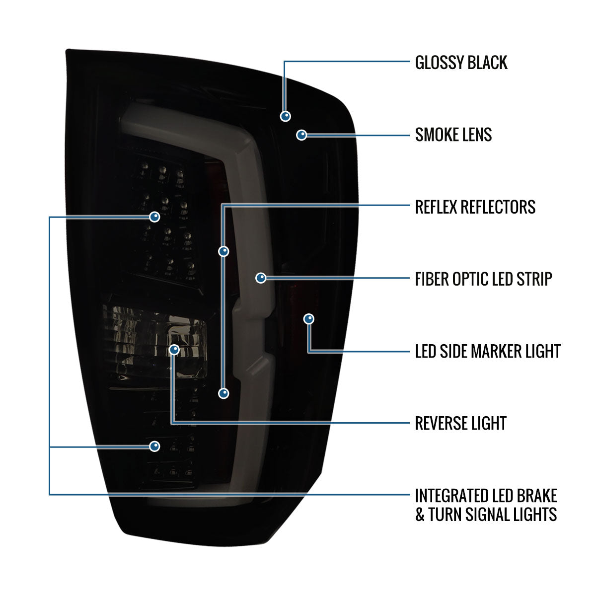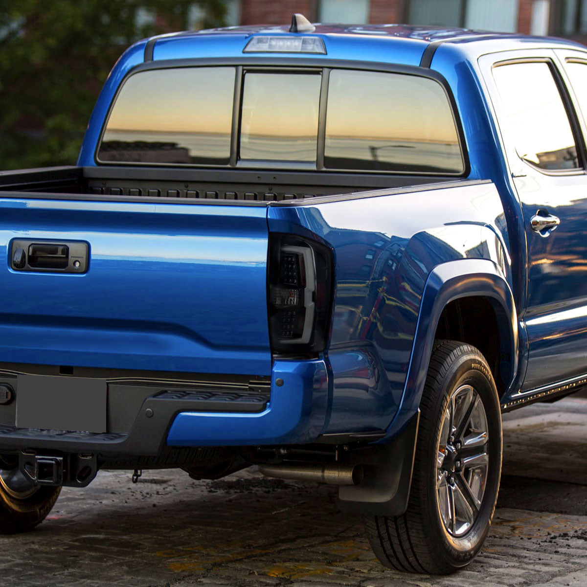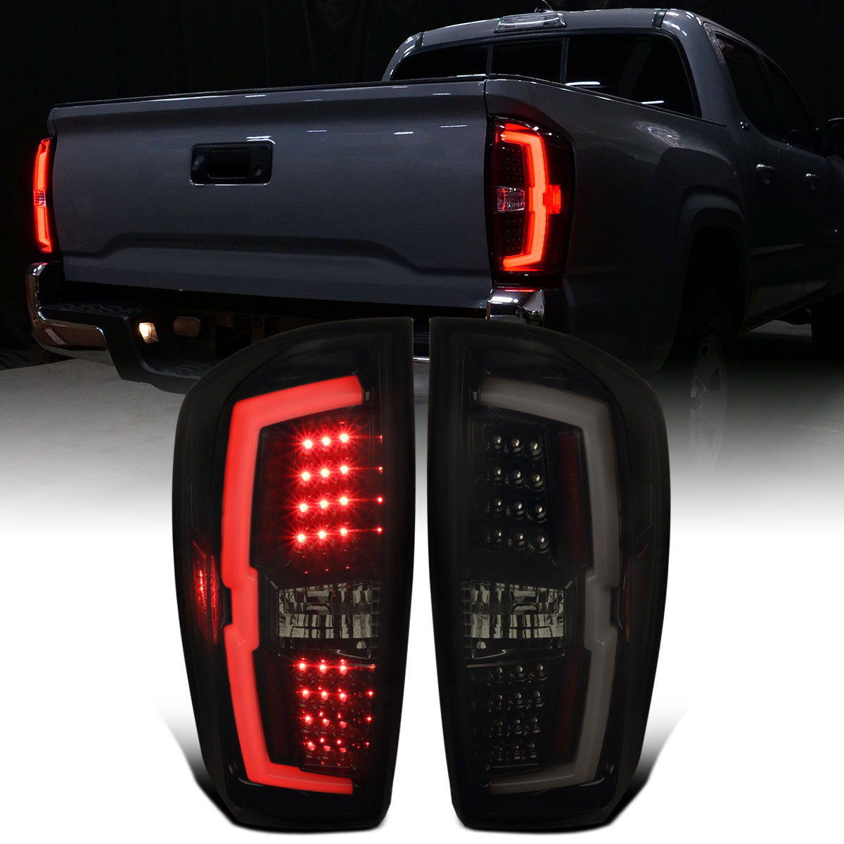 Ronnin - Fits 2016-2022 Toyota Tacoma Pickup LED Tail Lights Integrated Brake and Turn Signal Lamps Assembly Pair | Black Smoke