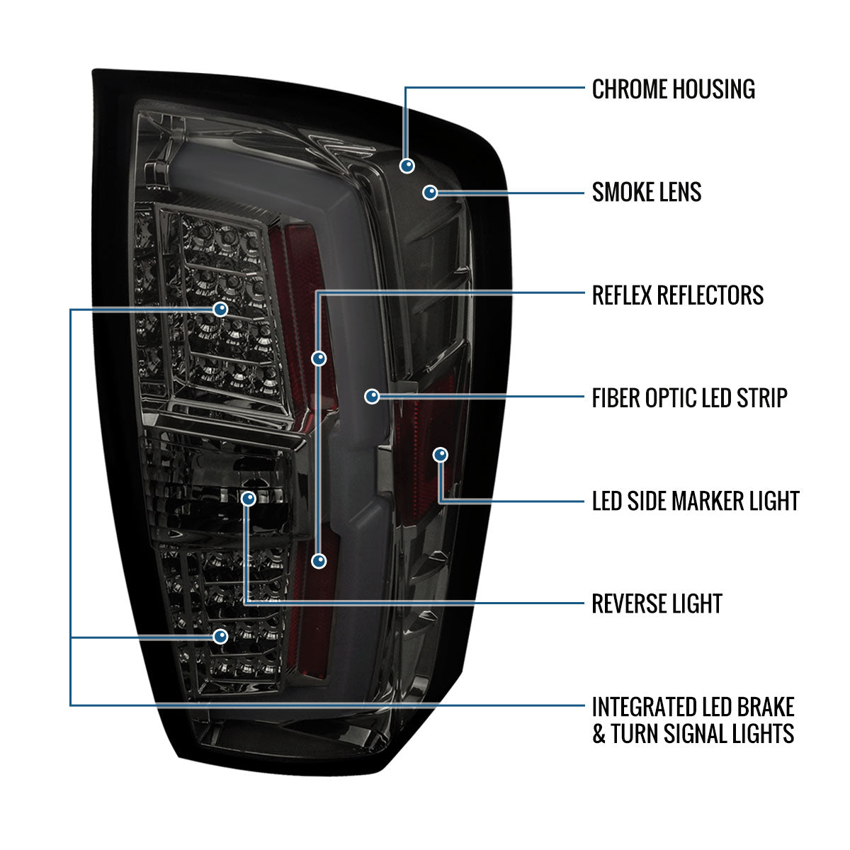 Ronnin - Fits 2016-2022 Toyota Tacoma Pickup LED Tail Lights Integrated Brake and Turn Signal Lamps Assembly Pair | Smoke