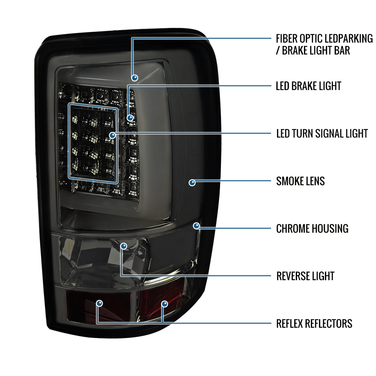 Ronnin - Fits 2000-2006 Chevy Suburban Tahoe GMC Yukon XL Denali Full LED Tail Lights Assembly Pair | Smoke