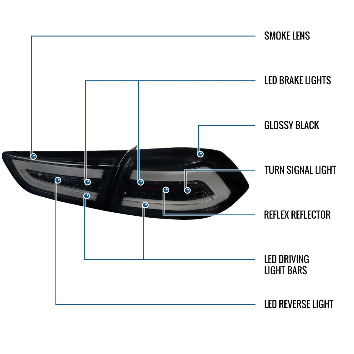 Ronnin - Fits 2008-2017 Mitsubishi Lancer Evolution Upgraded Replacement FULL LED Tail Lights Assembly | Black Smoke