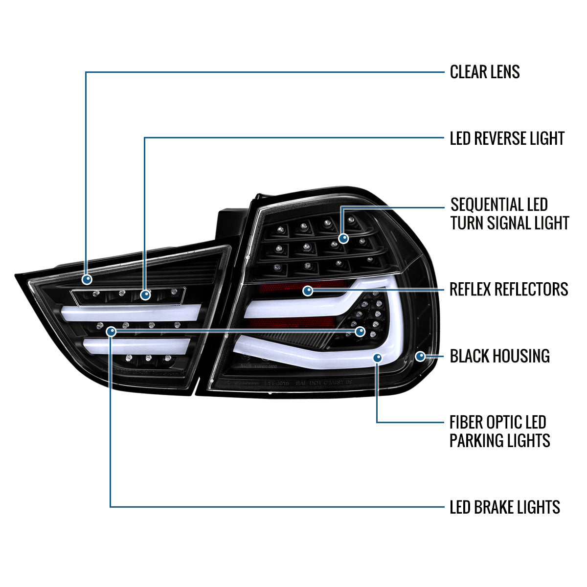 Ronnin - Fits 2009-2011 BMW E90 3-Series 325i 328i 330i Upgraded Replacement LED Tube Driving Lights Sequential Turn Signals Tail Lamps Assembly Pair | Black