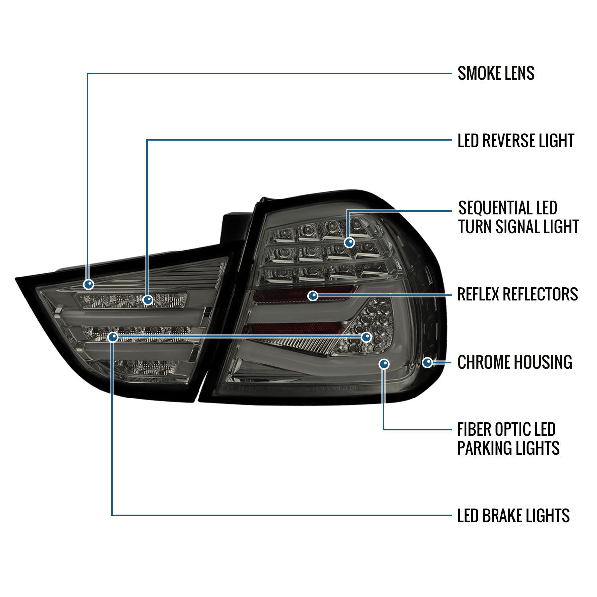 Ronnin - Fits 2009-2011 BMW E90 3-Series 325i 328i 330i Upgraded Replacement LED Tube Driving Lights Sequential Turn Signals Tail Lamps Assembly Pair | Smoke