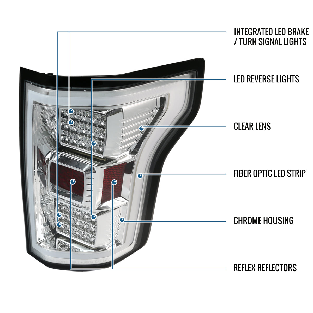 Ronnin - Fits 2015-2017 Ford F150 Upgraded Full LED Tail Lights Assembly Pair | Chrome | White Tube