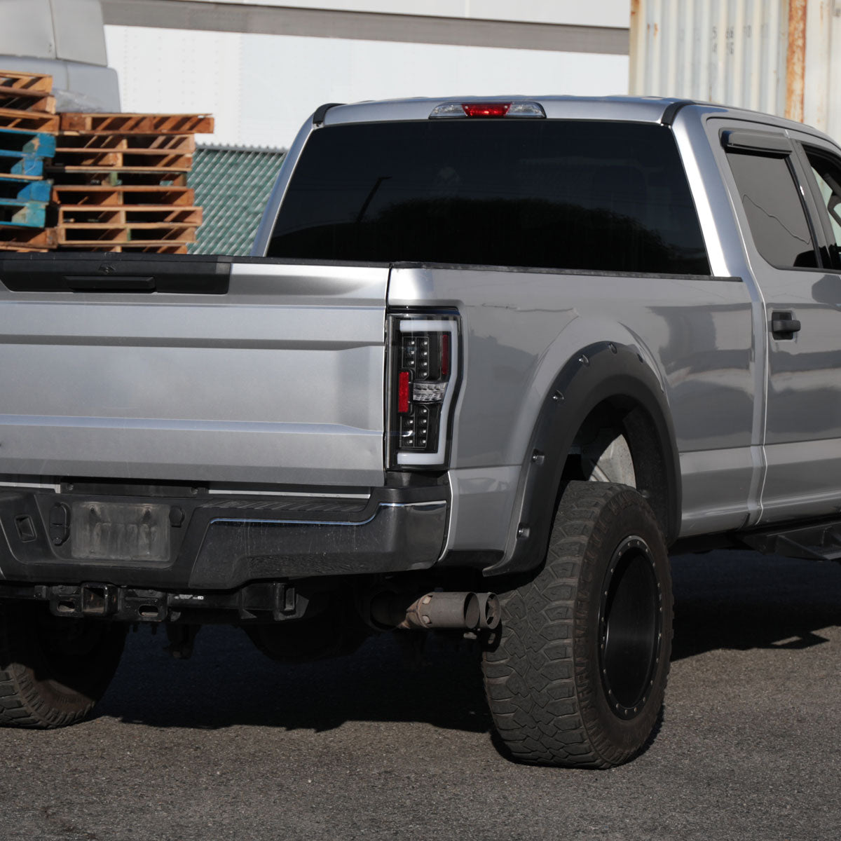 Ronnin - Fits 2017-2019 Ford F250 F350 F450 F550 Super Duty Upgraded Full LED Tail Lights Integrated Brake + Turn Signal Assembly Pair | Black | White Tube