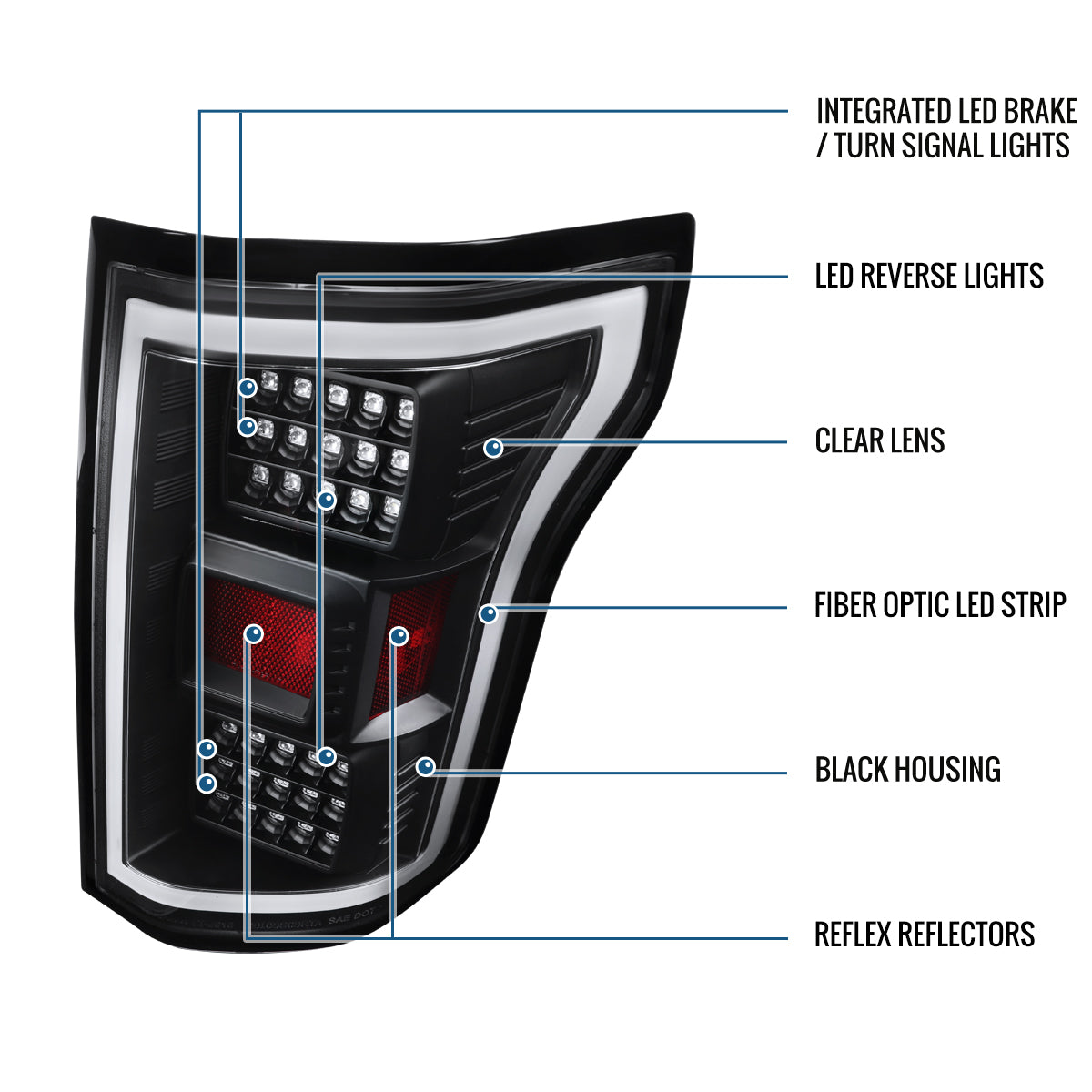 Ronnin - Fits 2018-2020 Ford F150 Replacement Full LED Tail Lights Assembly Pair | Black