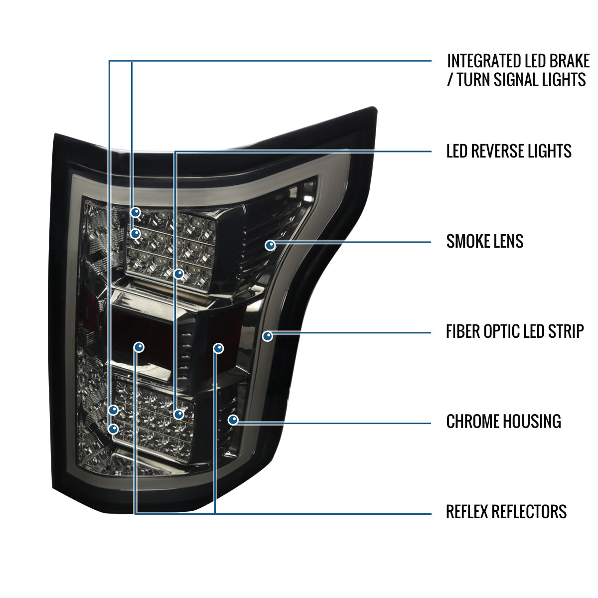 Ronnin - Fits 2018-2020 Ford F150 Replacement Full LED Tail Lights Assembly Pair | Smoke