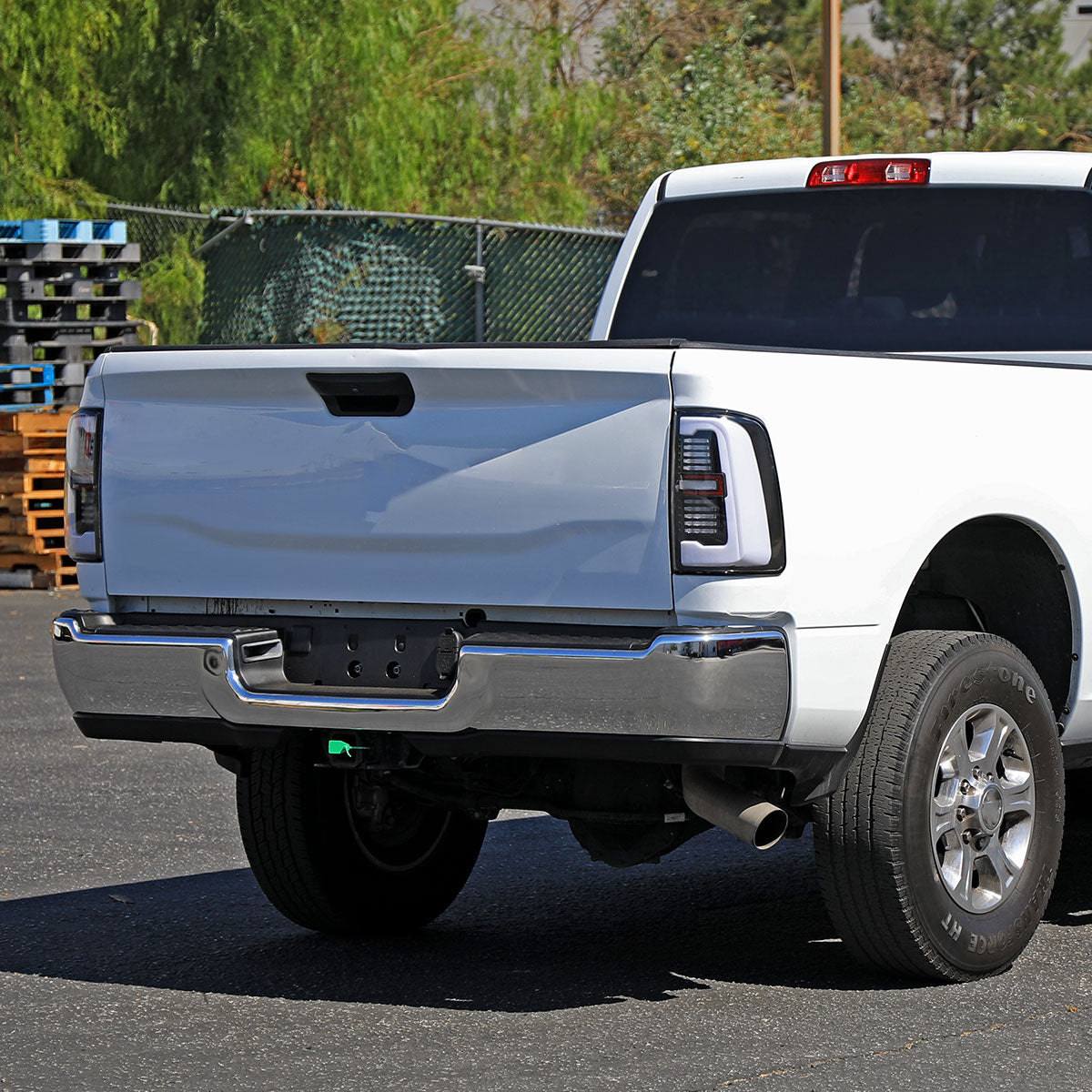 Ronnin - Fits 2019-2024 Ram 2500 3500 Halogen Model Replacement Full LED Tail Lights Sequential Turn Signal + Animated Startup Effect Assembly Pair | Black | White Tube