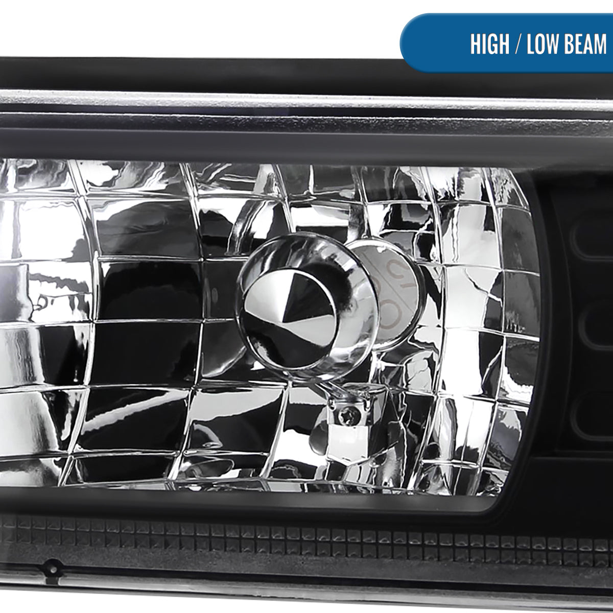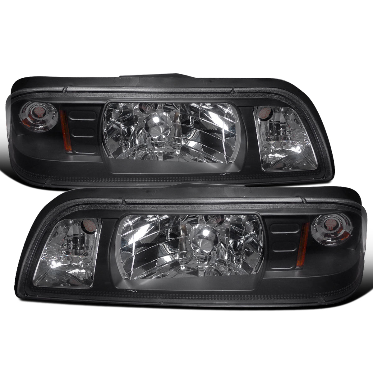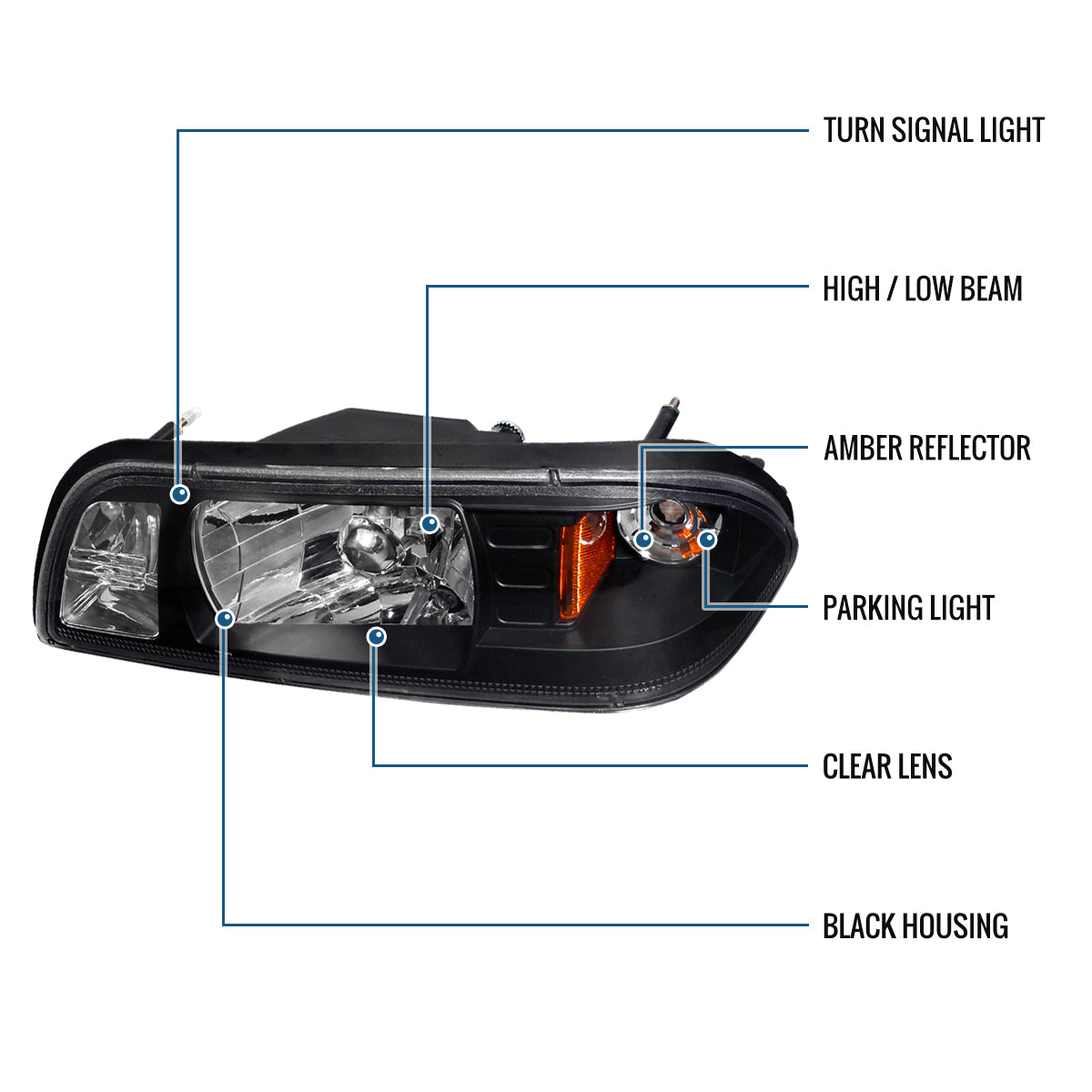 Ronnin - Fits 1987-1993 Ford Mustang Factory Replacement All-in-One Headlights Assembly Pair | Black