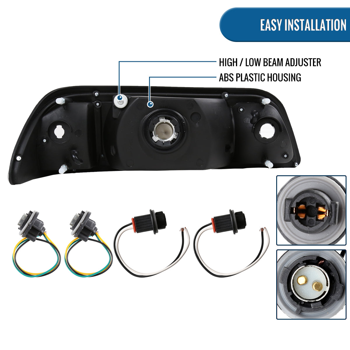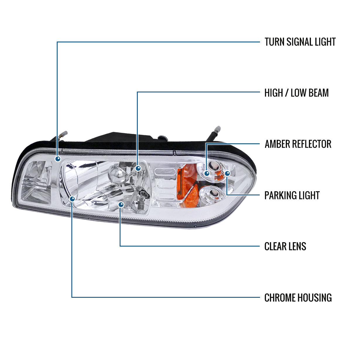 Ronnin - Fits 1987-1993 Ford Mustang Factory Replacement All-in-One Headlights Assembly Pair | Chrome
