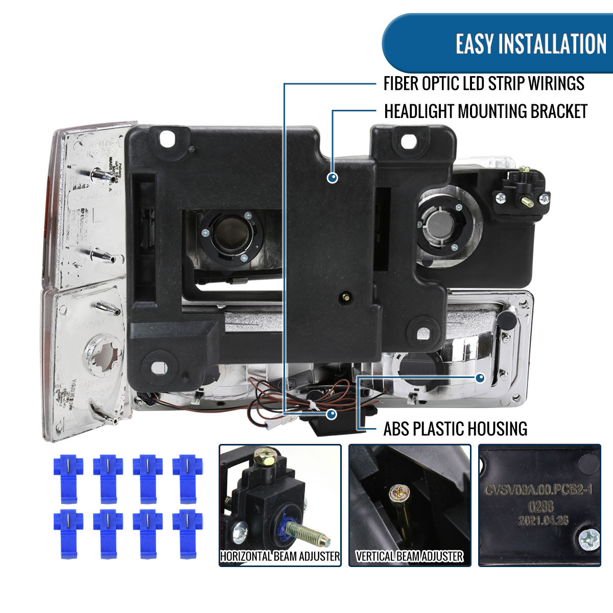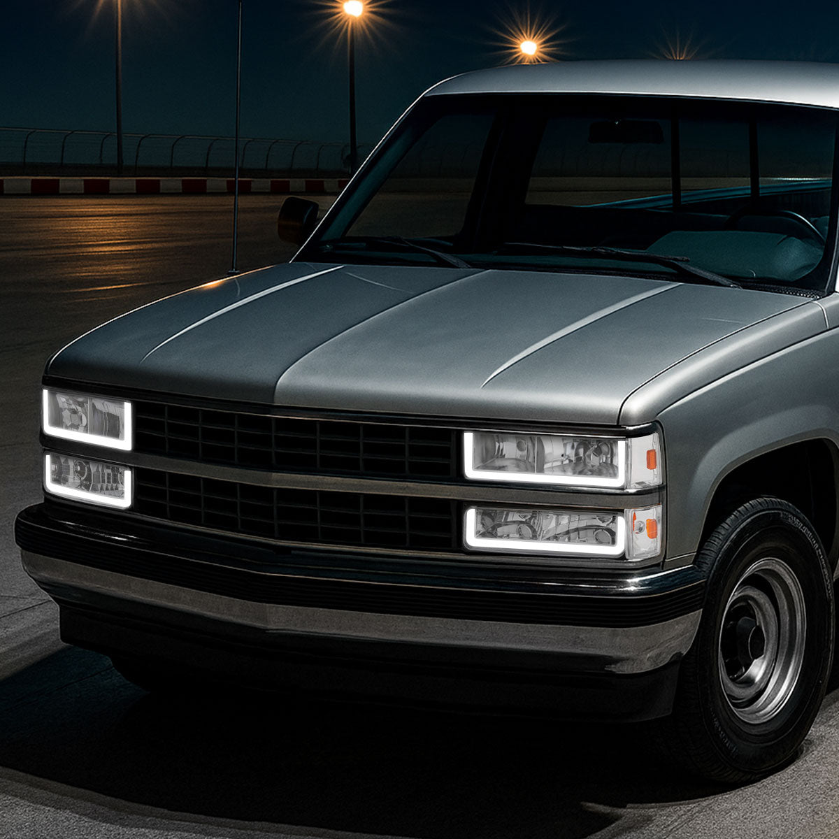 Ronnin - Fits 1988-1993 Chevy GMC C10 C/K 1500 2500 3500 Suburban Blazer Tahoe Silverado Sierra Upgraded LED Running Tube Lights Headlights + Bumper Lights + Corner Lamps Assembly Pair | Chrome