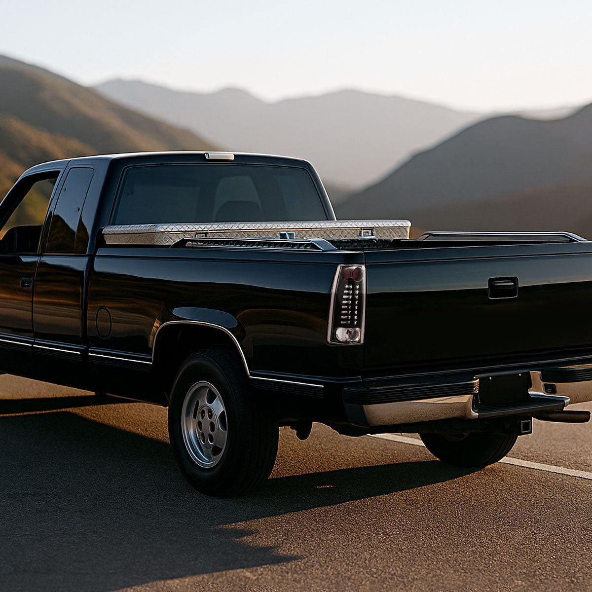 Ronnin - Fits 1988-2000 Chevy GMC C/K C10 Silverado Blazer Tahoe Cadillac Escalade LED Integrated Brake and Turn Signals Tail Lights Assembly Pair | Black
