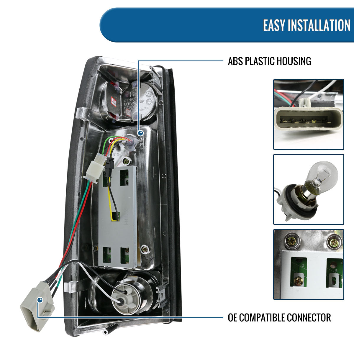 Ronnin - Fits 1988-2000 Chevy GMC C/K C10 Silverado Blazer Tahoe Cadillac Escalade LED Integrated Brake and Turn Signals Tail Lights Assembly Pair | Chrome