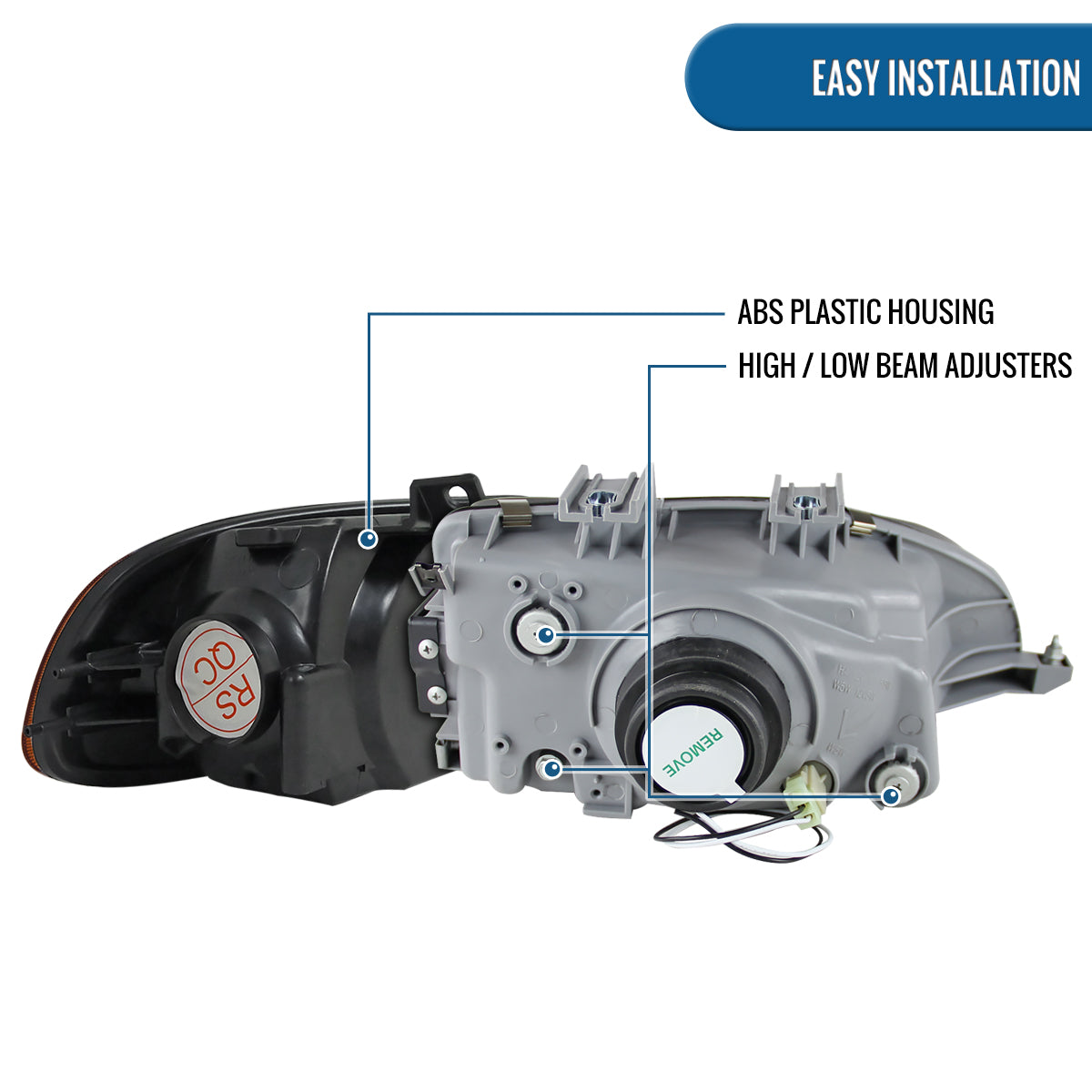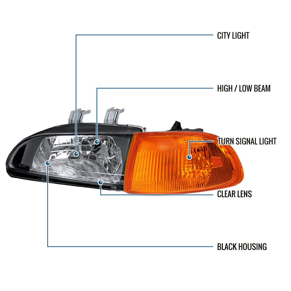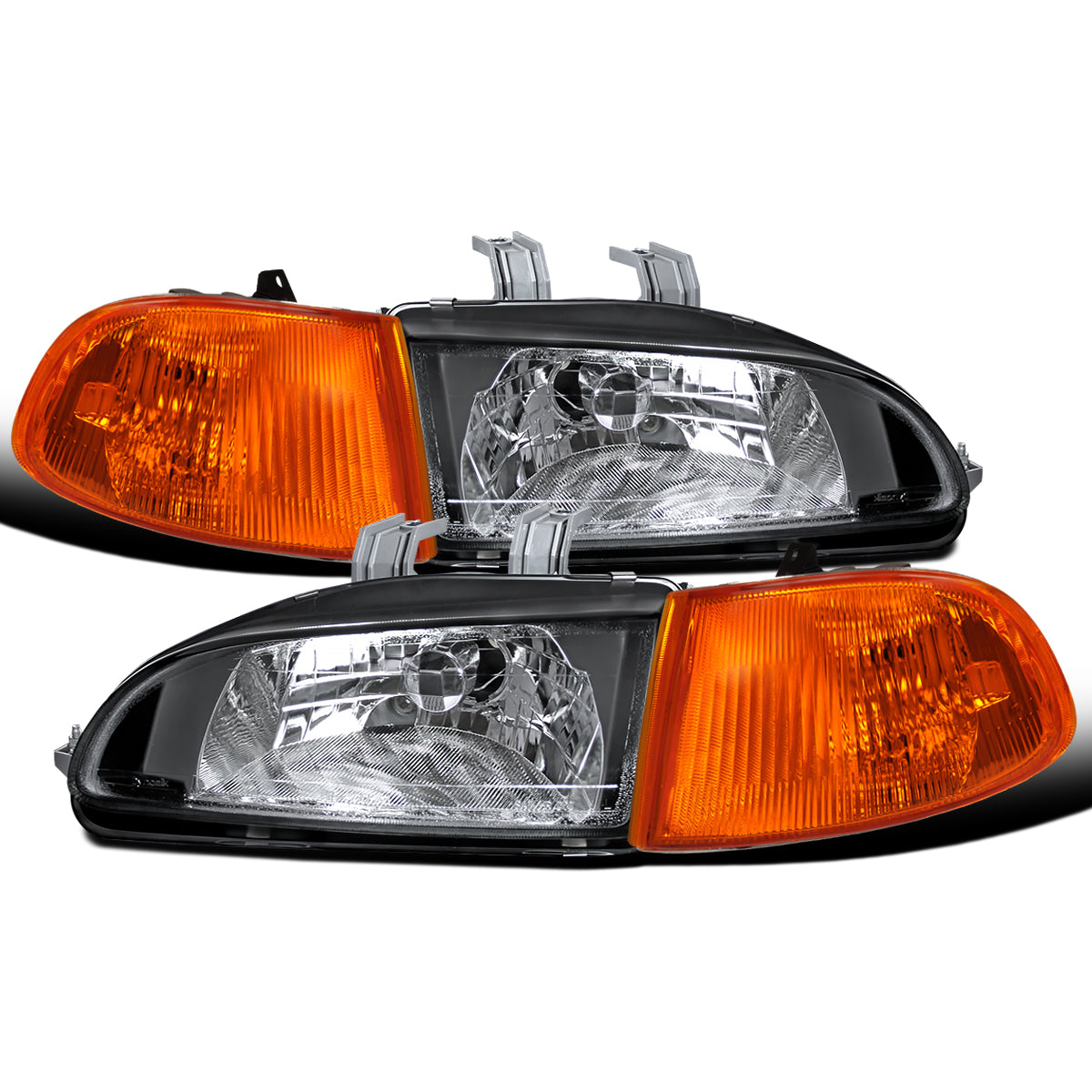 Ronnin - Fits 1992-1995 Honda Civic 2Dr 3Dr Coupe Hatchback Factory Replacement Headlights + Amber Corner Turn Signal Lights Assembly Pair | Black