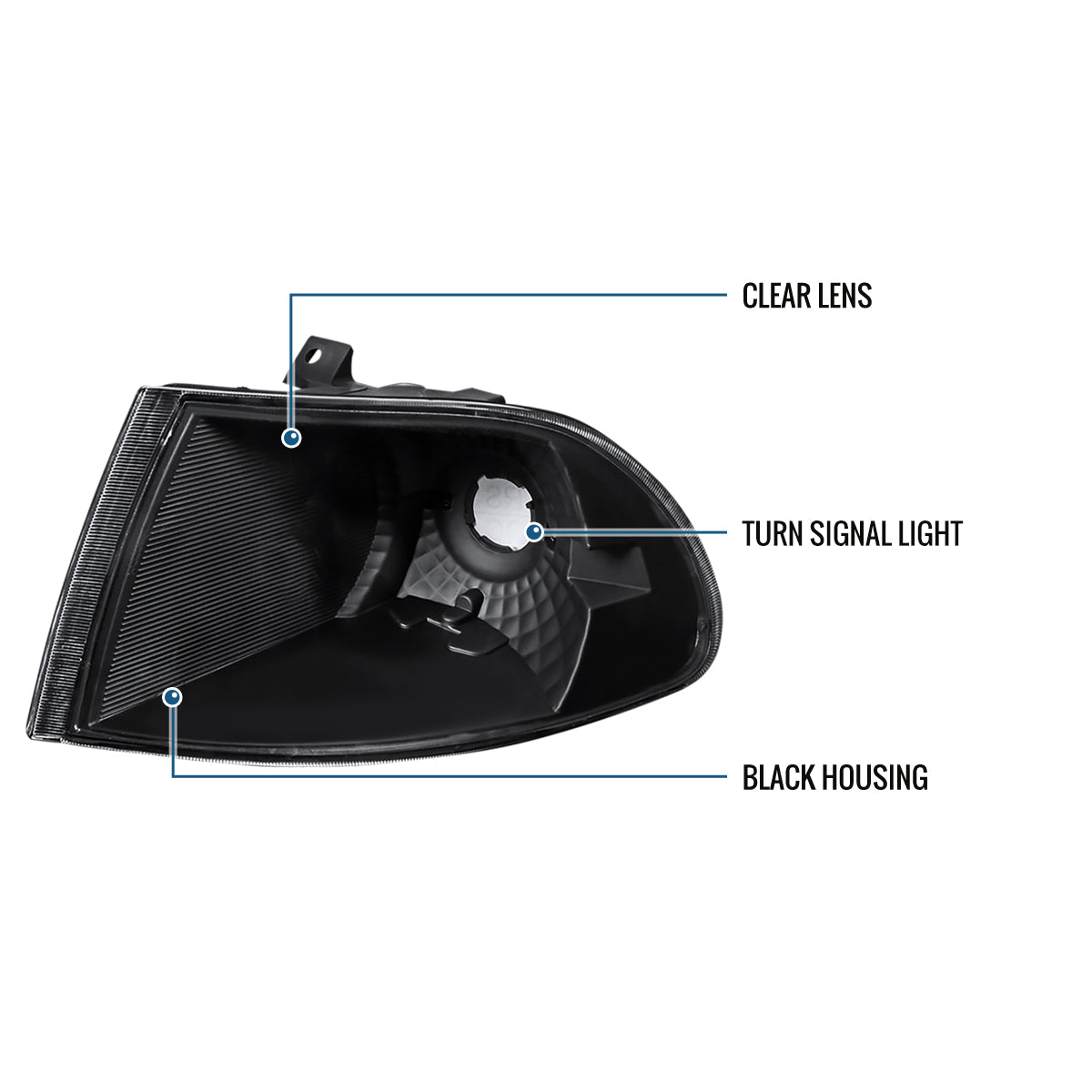 Ronnin - Fits 1992-1995 Honda Civic 4Dr Sedan Corner Turn Signals Lights Replacement Assembly Pair | Black