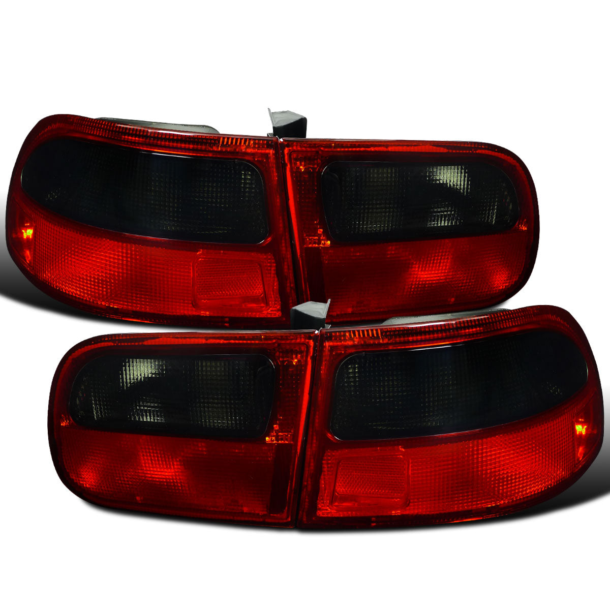 Ronnin - Fits 1992-1995 Honda Civic Coupe 2Dr Hatchback Factory Replacement Tail Lights Assembly Pair | Red Smoke