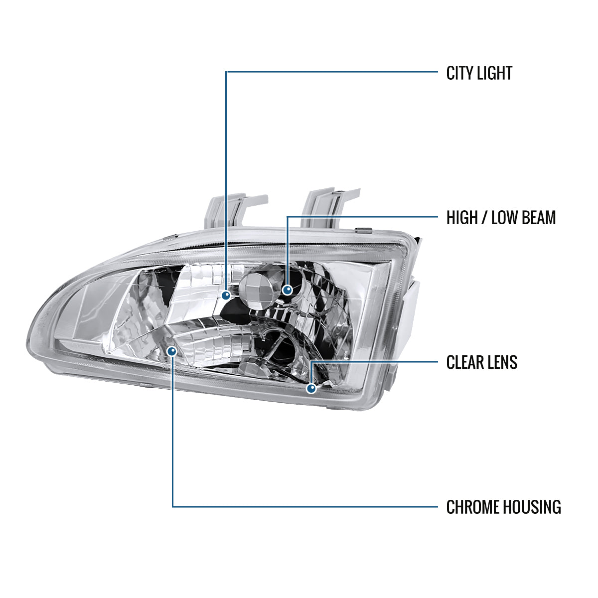 Ronnin - Fits 1992-1995 Honda Civic Factory Replacement Headlights Assembly Pair | Chrome