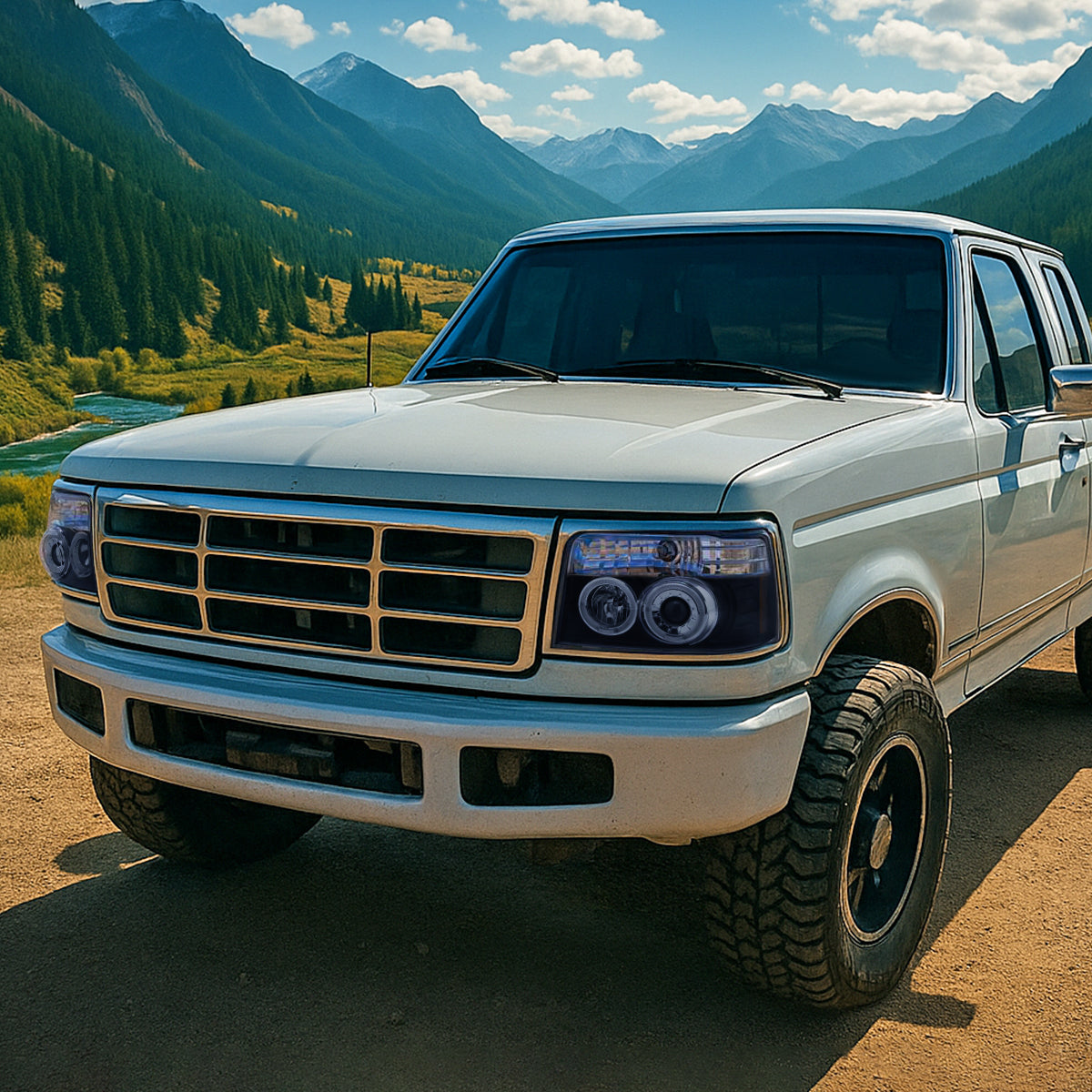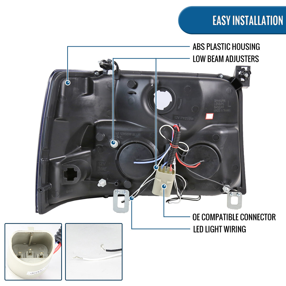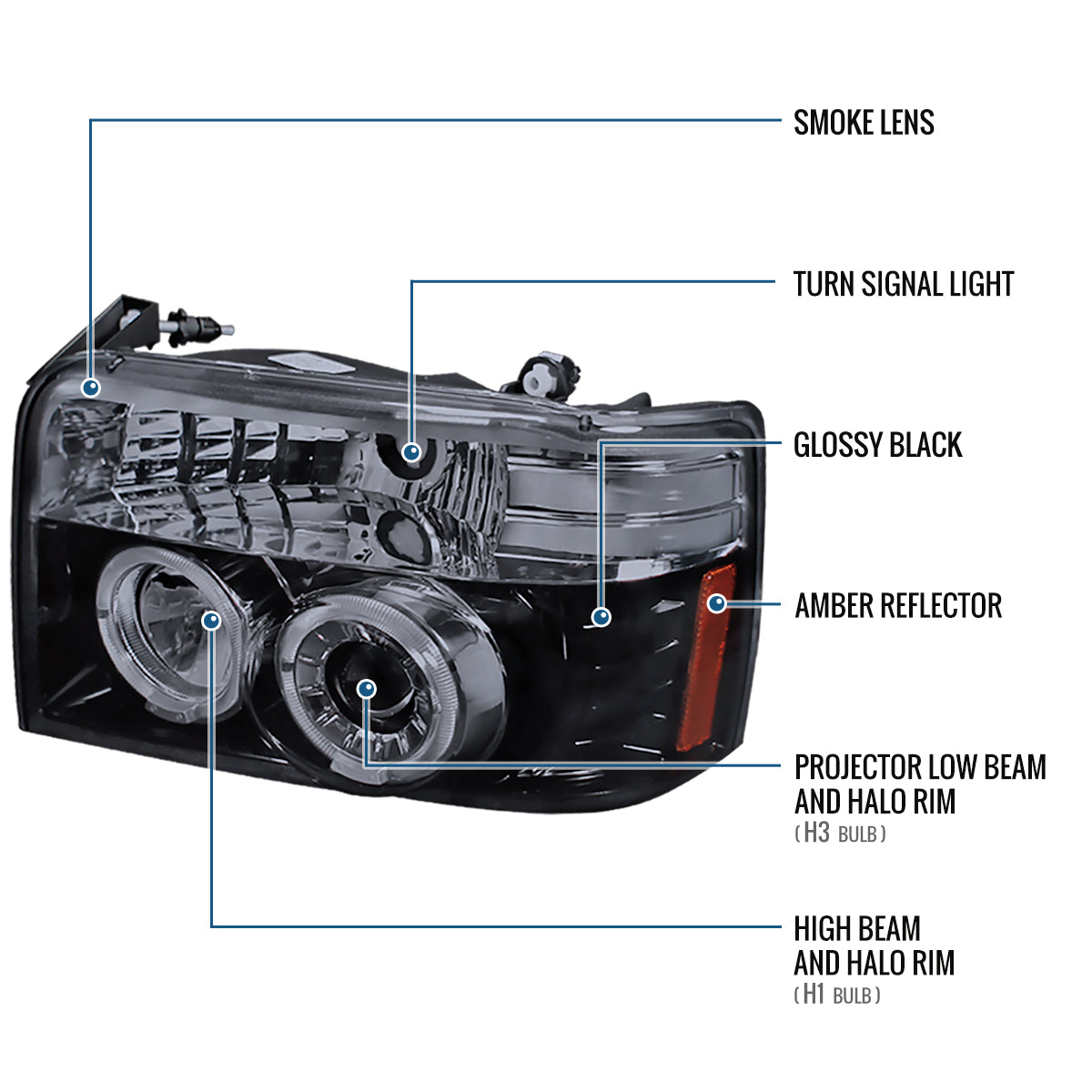 Ronnin - Fits 1992-1996 Ford F150 F250 F350 Bronco Upgrade Replacement LED Dual Rims Projector Headlights Assembly Pair | Black Smoke