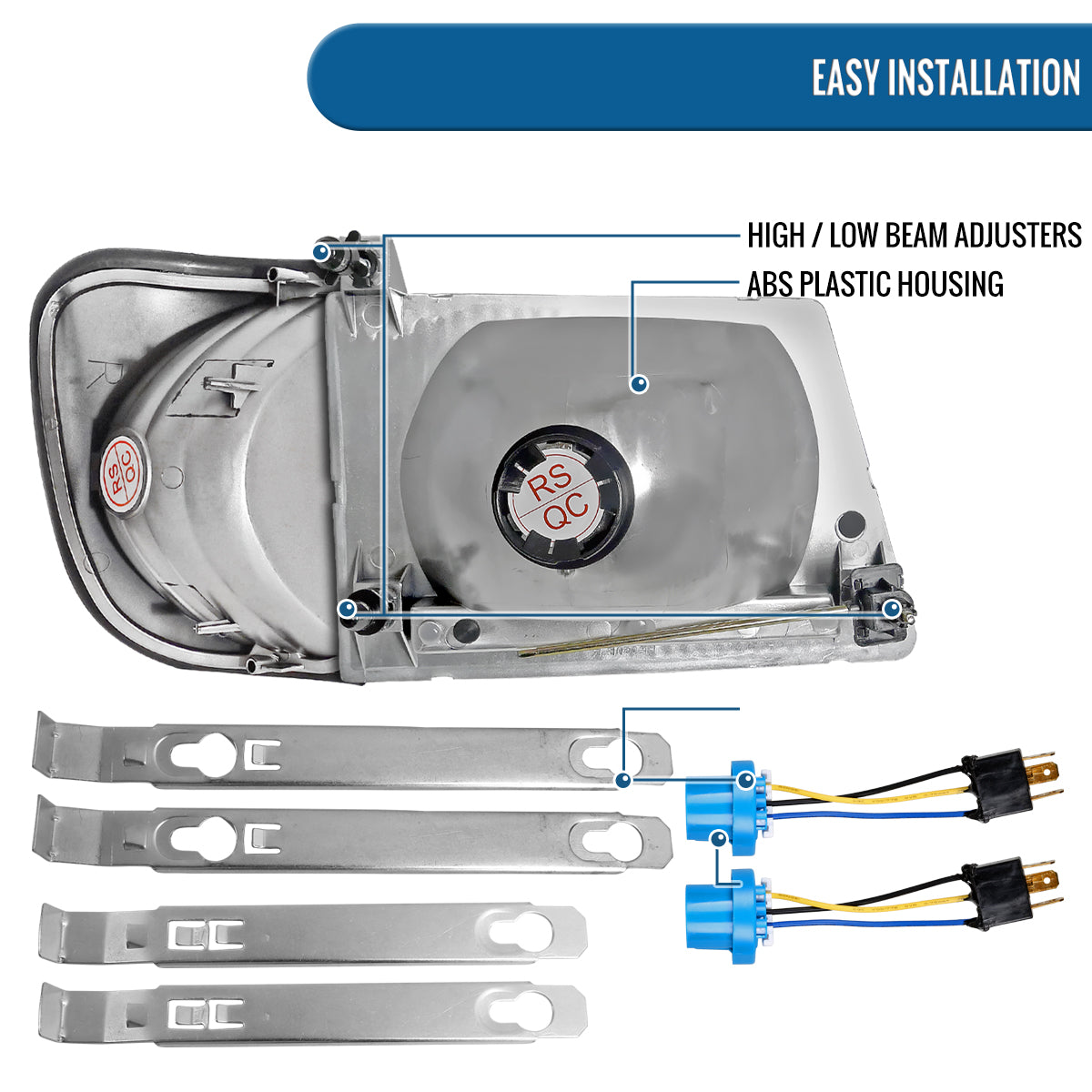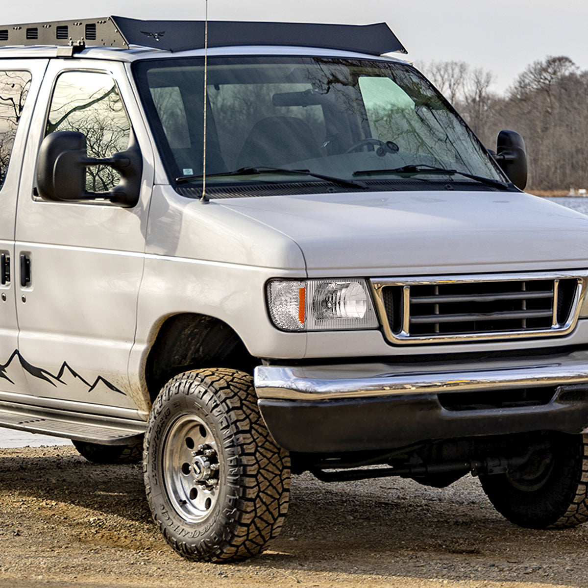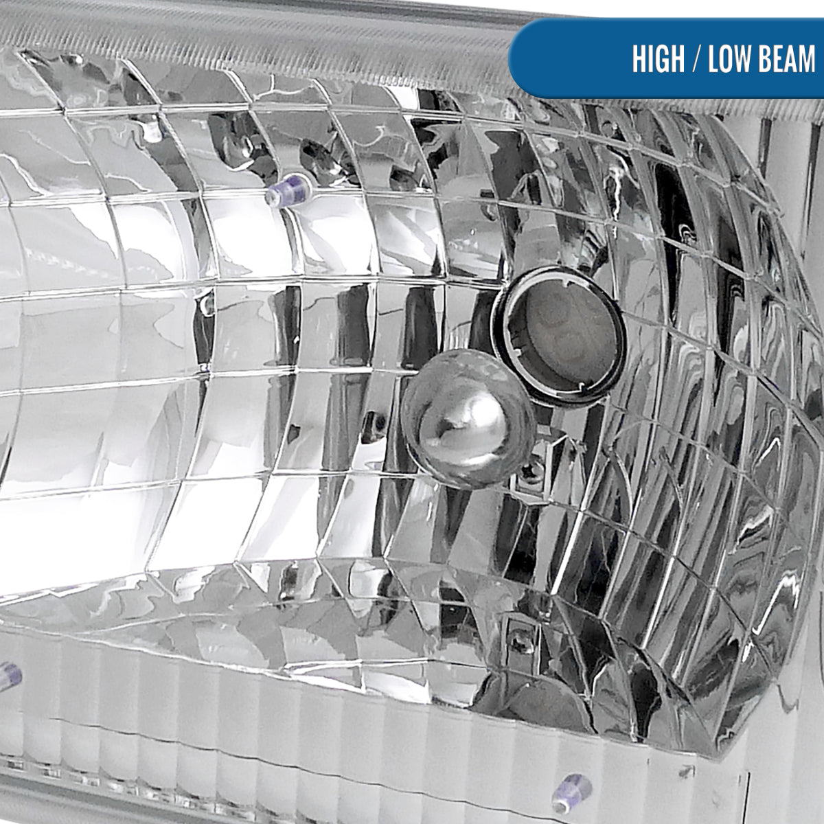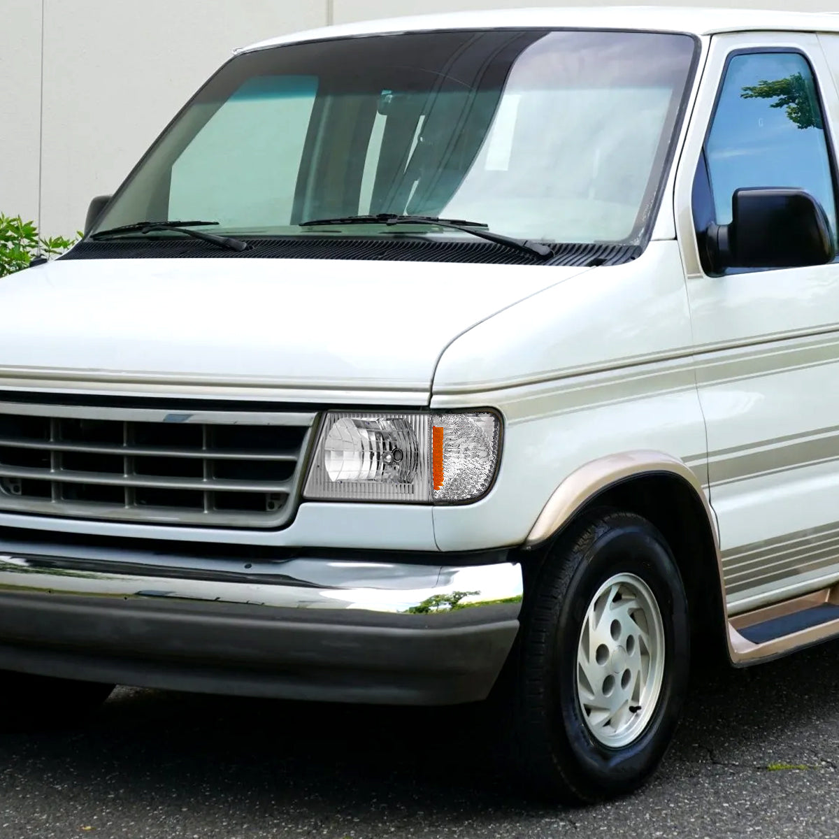 Ronnin - Fits 1992-2006 Ford Econoline E-Series Cargo Van Factory Headlights + Corner Parking Signal Lamps Replacement Assembly Pair | Chrome