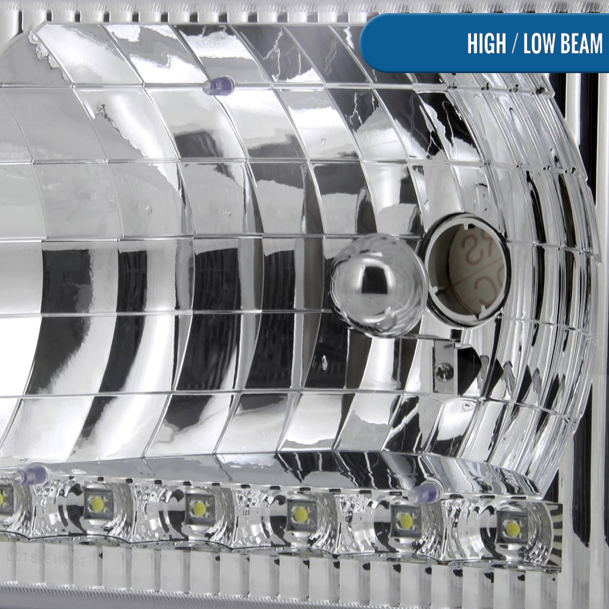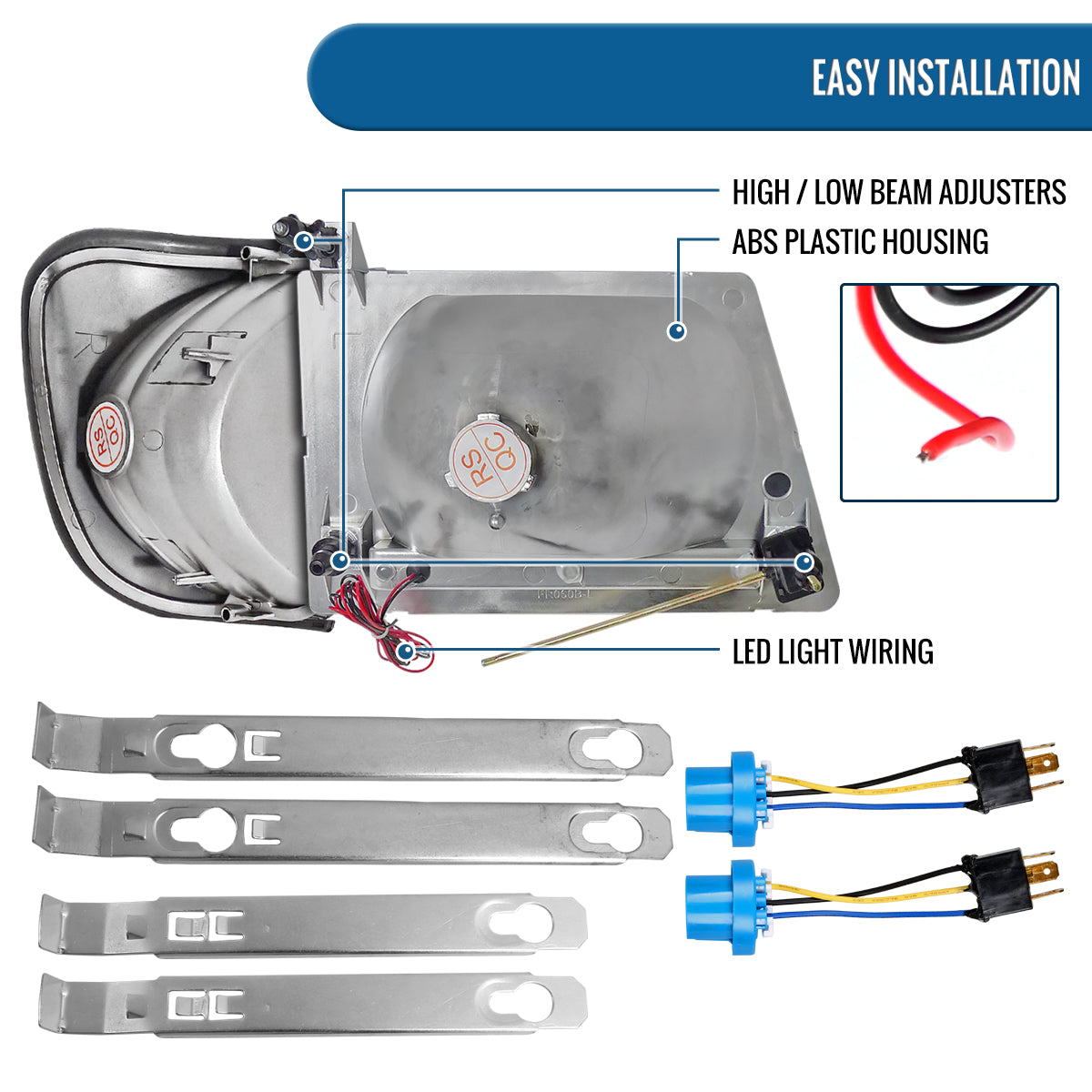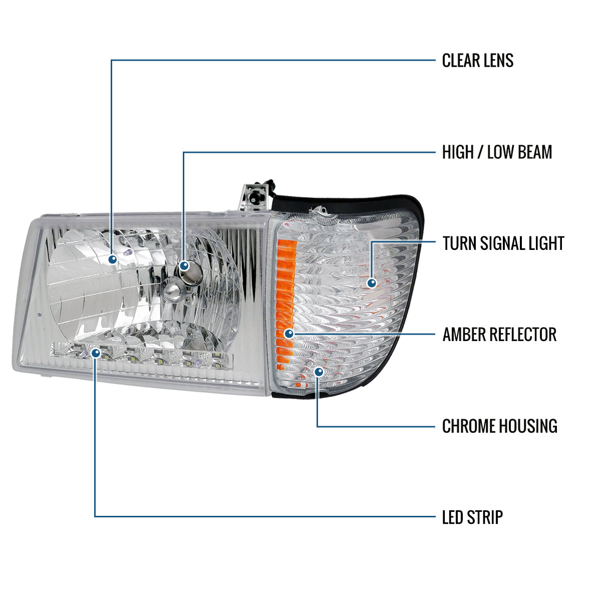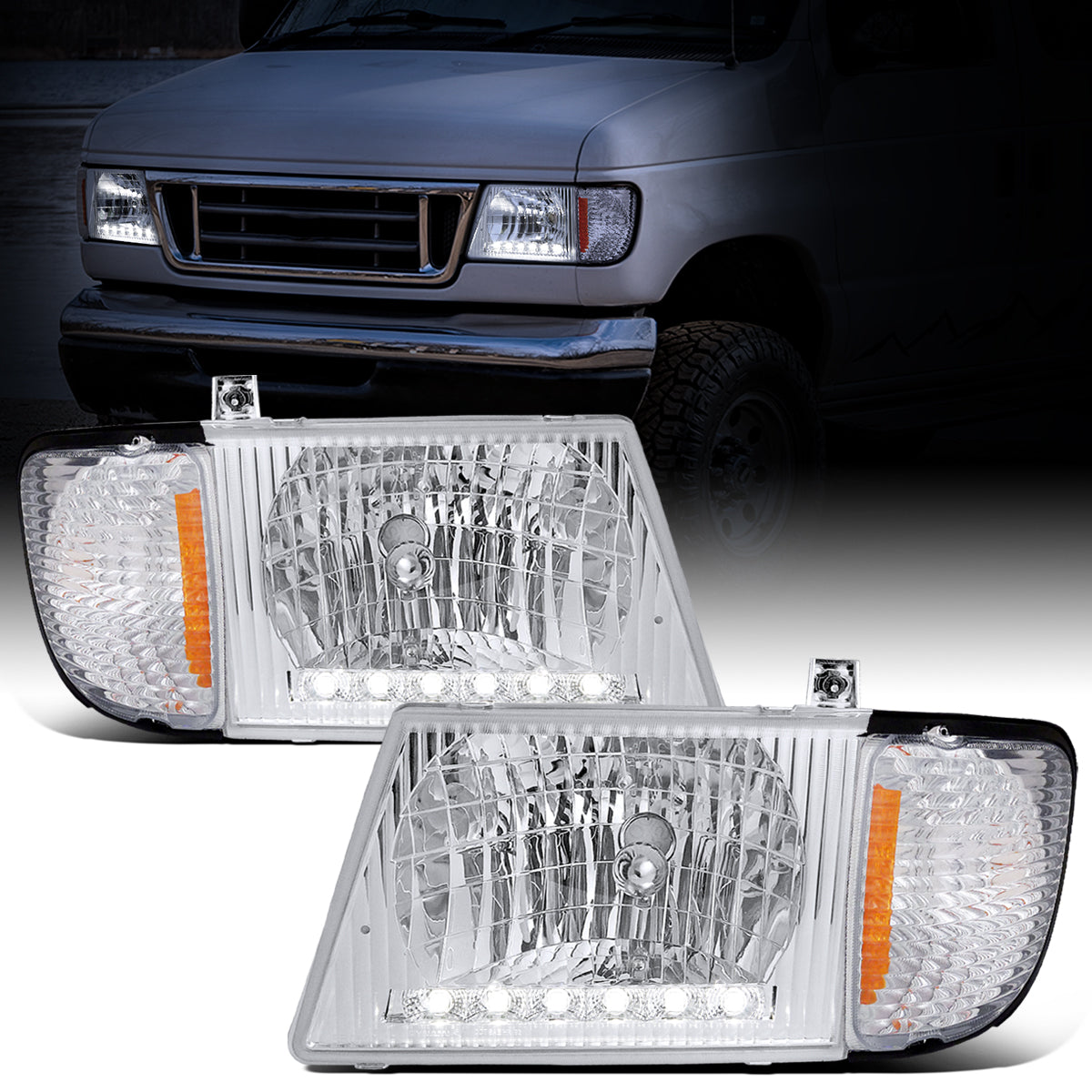 Ronnin - Fits 1992-2006 Ford Econoline E-Series Cargo Van LED Tube Headlights + Corner Parking Signal Lamps Replacement Assembly Pair | Chrome